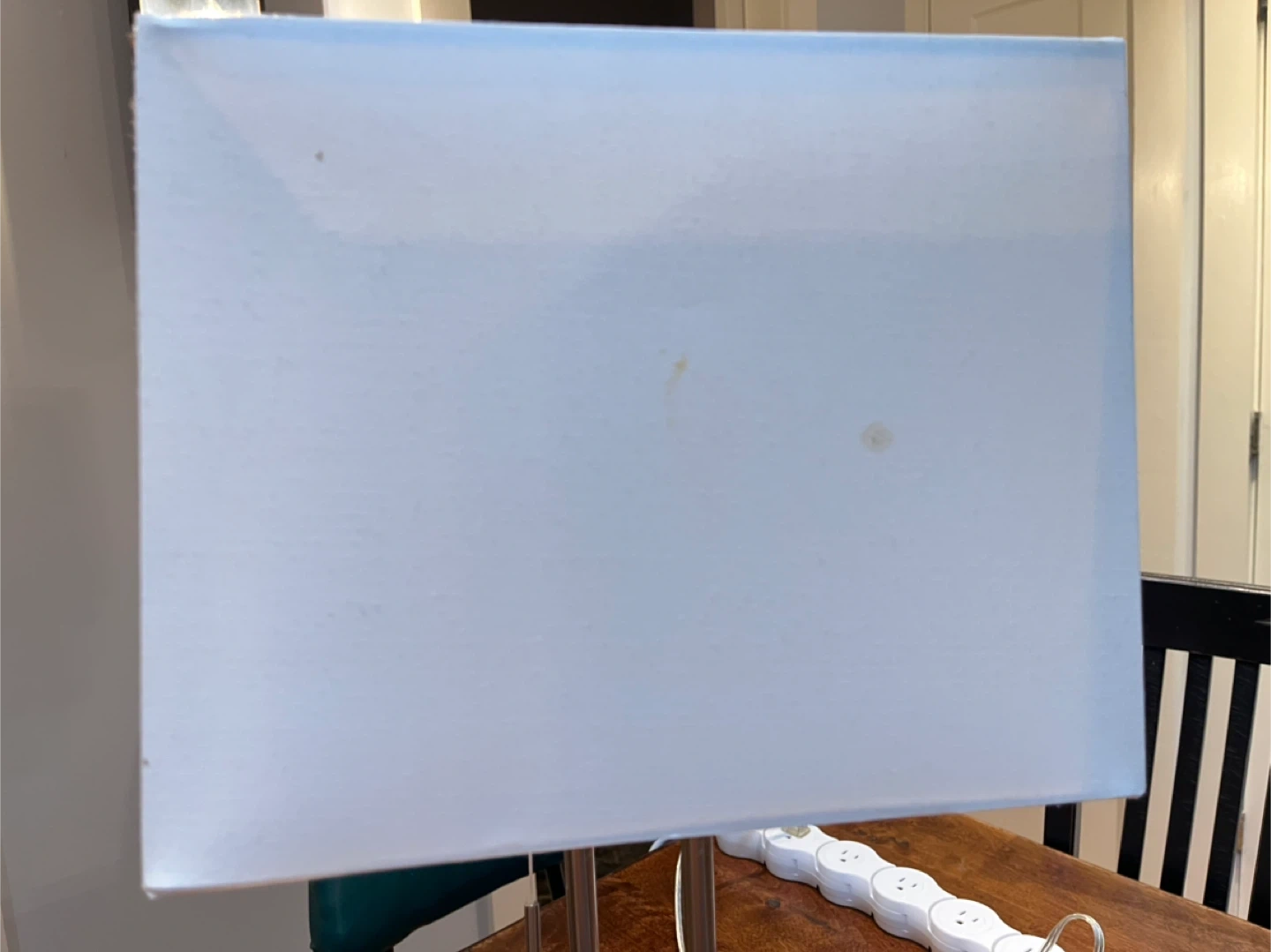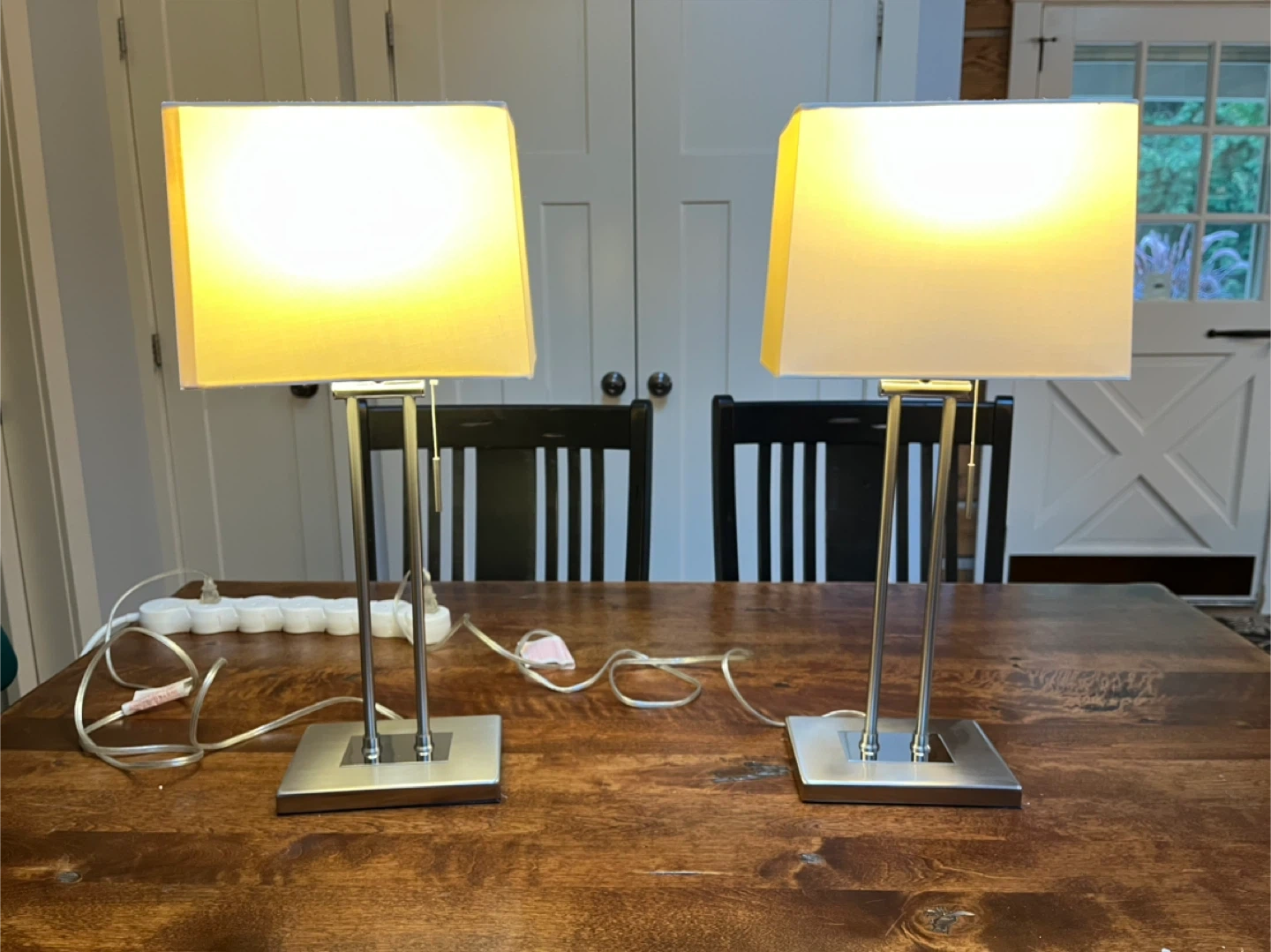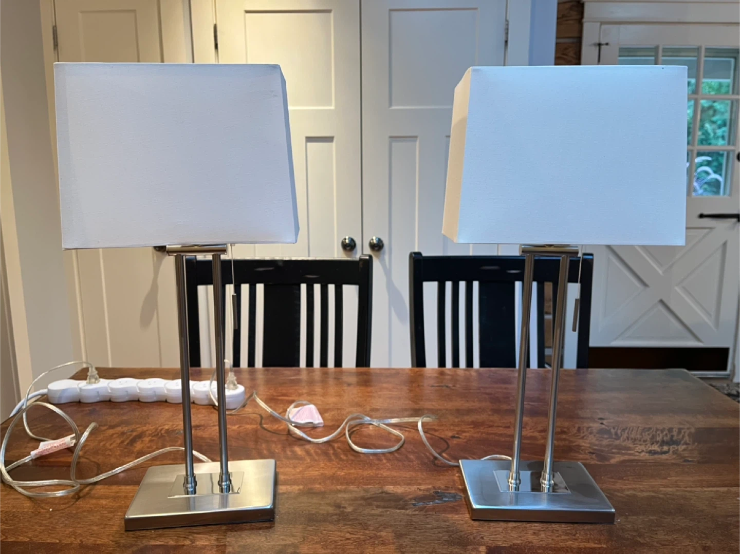 Selling a pair of table lamps! They feature a sleek, modern design with square, brushed metal bases and white rectangular shades. They would look great in a bedroom or living room setting. There are some minor stains on the shades. Originally purchased at Osso Lighting in Oshawa for $480, asking $100 for the pair OBO.