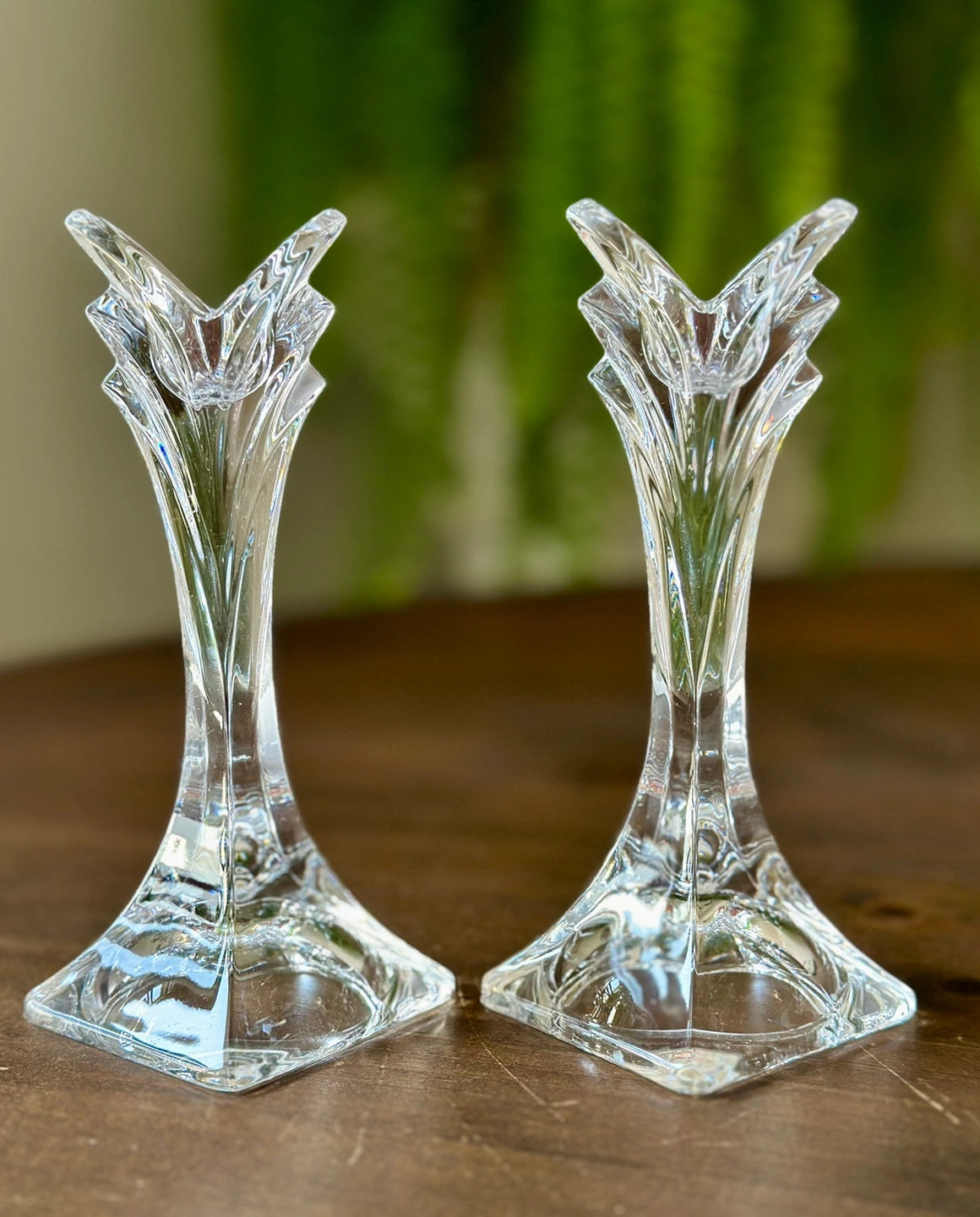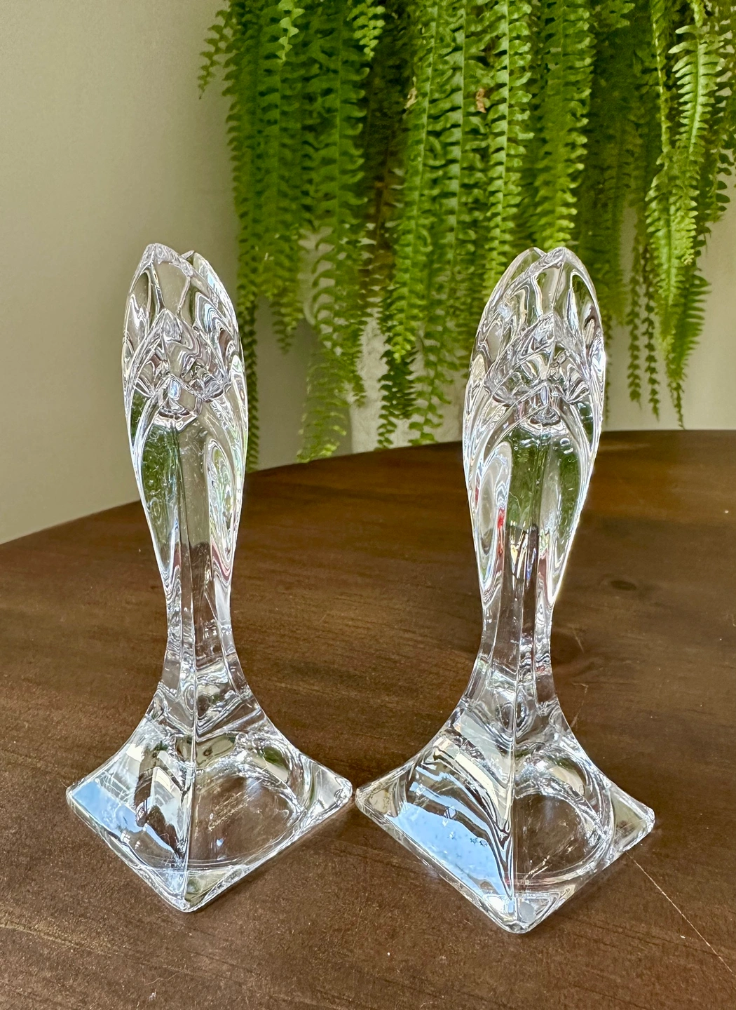 Pair of Vintage Mikasa Lead Crystal Art Deco Candlesticks