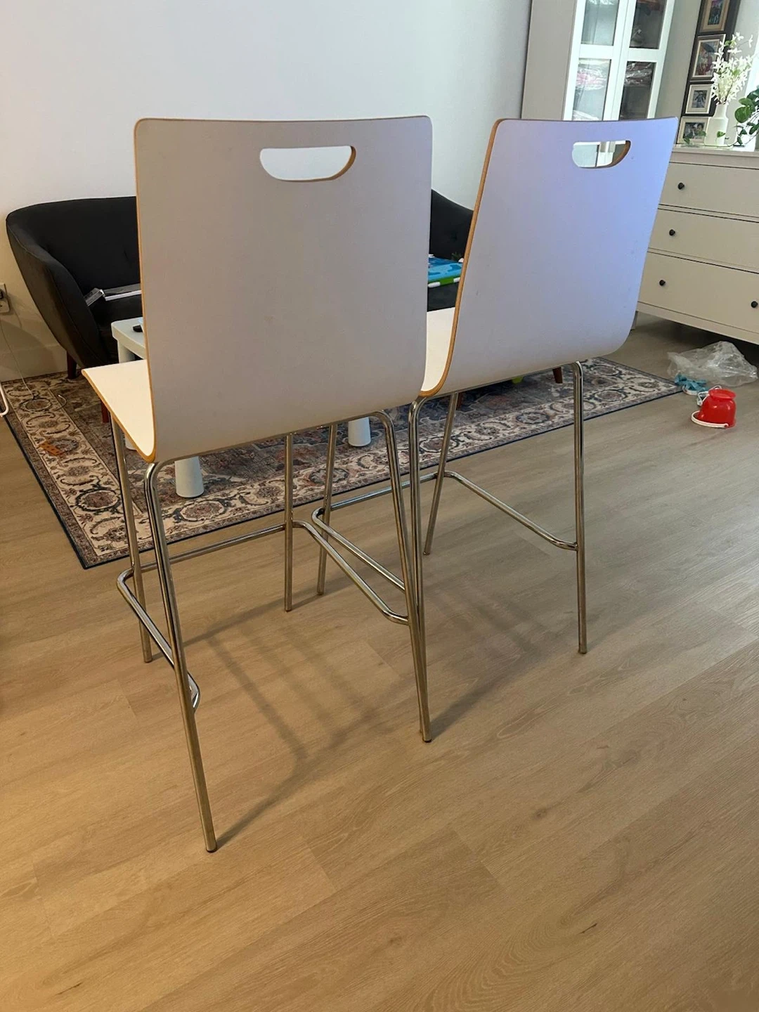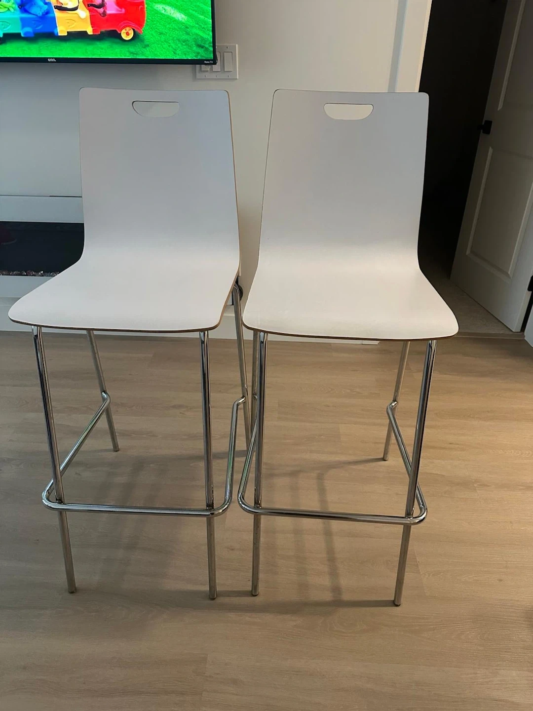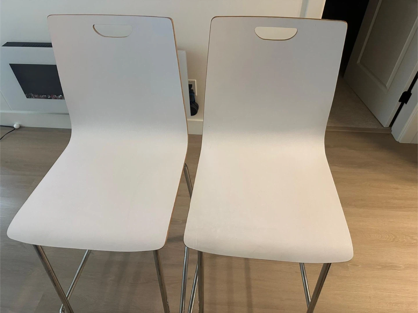 18Selling a pair of bar stools. They're in great shape and would look fantastic in any kitchen or bar area. The white colour is super versatile and the simple design will fit right in with your decor. They are sturdy and comfortable for sitting