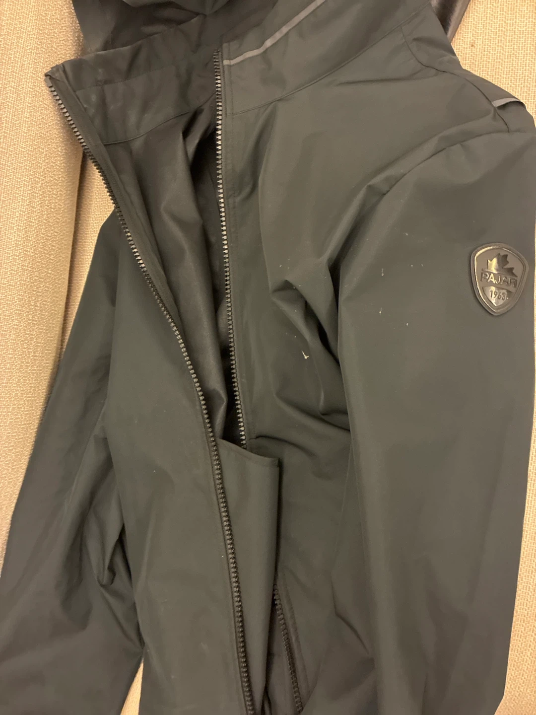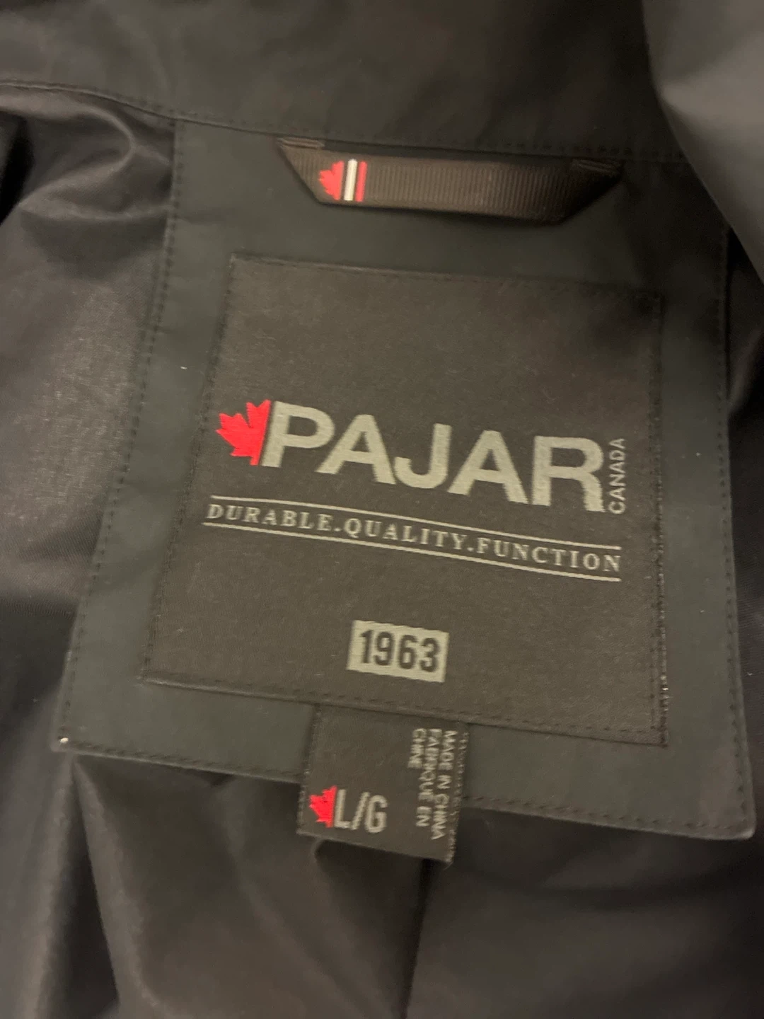 Selling a Pajar jacket in size L/G. It's black and features a rain repellent design. Great for those wet Canadian days!