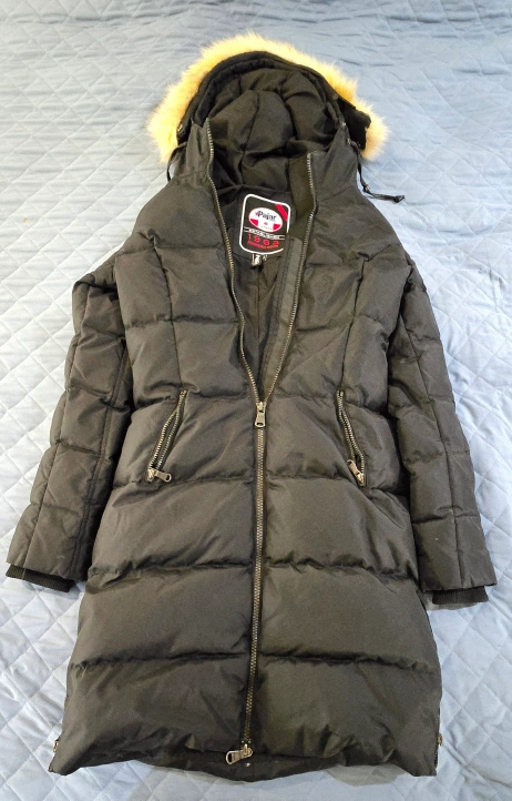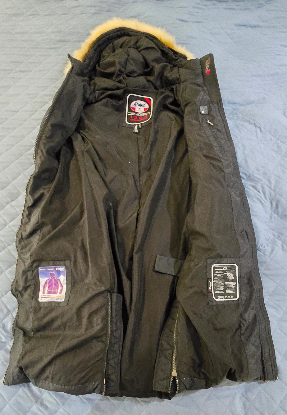 150Stay warm this winter with a Pajar down parka! It's in great condition and ready for the cold weather. This stylish parka is perfect for braving the Canadian winter. It features a cozy hood and a durable design to keep you snug and comfortable. SIZE XSmall