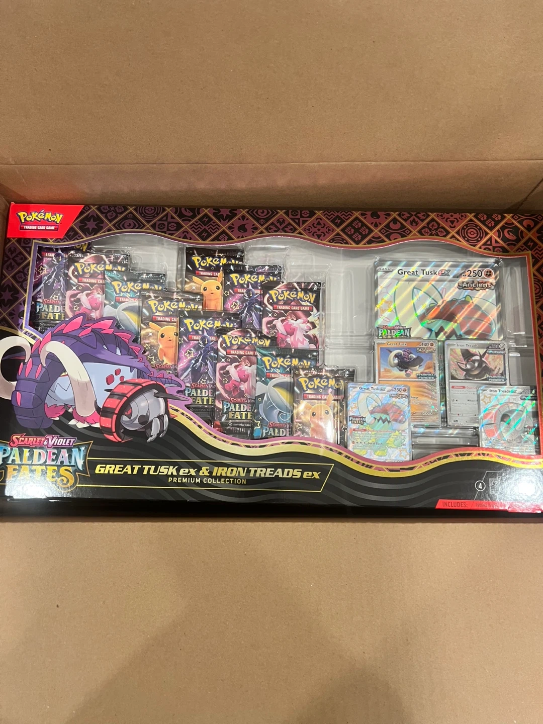 Paldean Fates Great Tusk ex & Iron Threads ex Premium Collection