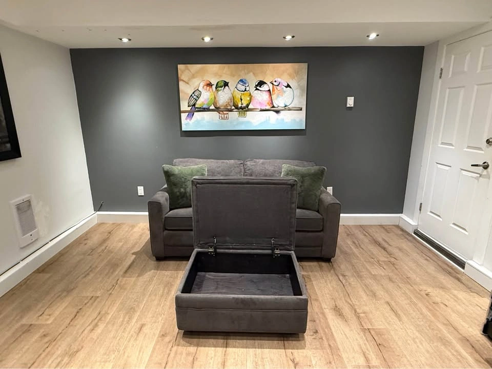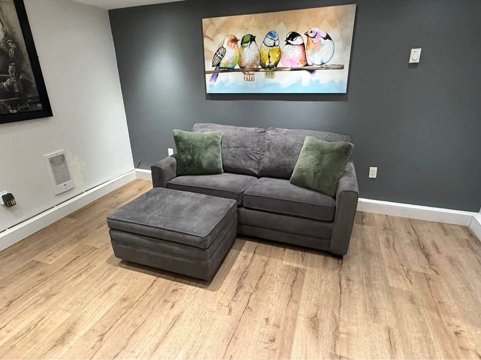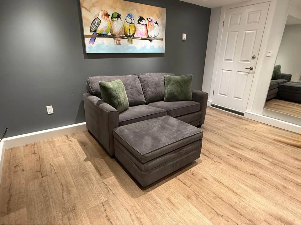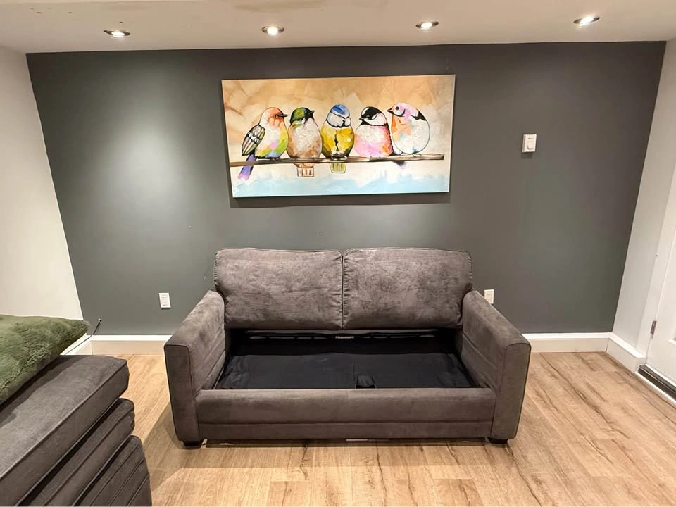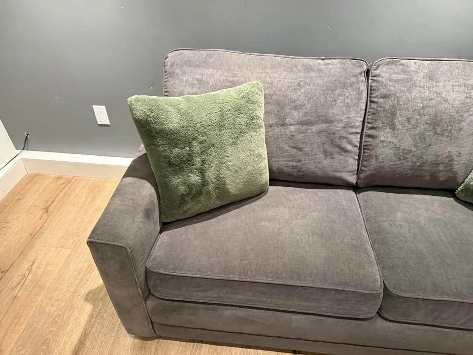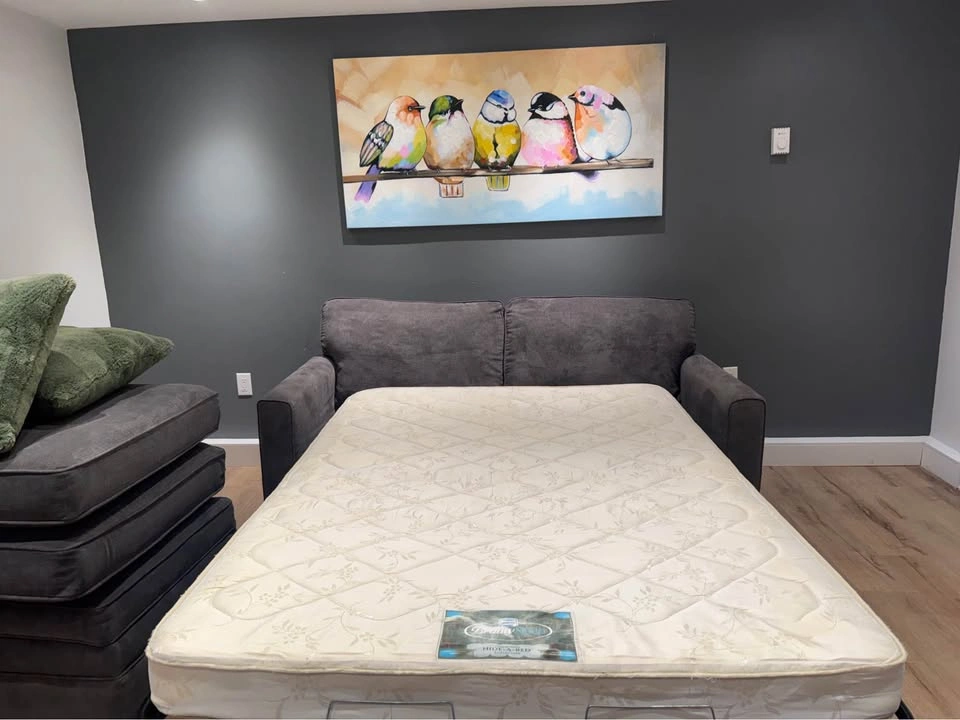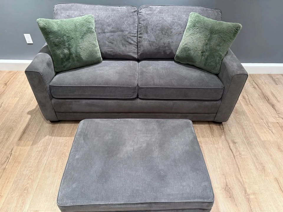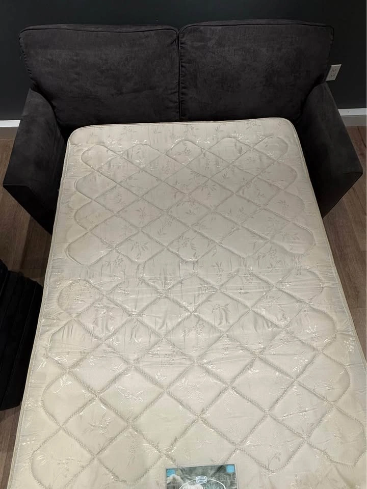 42No deposit required. This Pallucci sleeper sofa combines practicality, comfort, and modern design. It easily converts into a full-size bed, perfect for guests, and includes a matching storage ottoman that keeps your blankets or essentials neatly tucked away. β¨ Features: β Pull-out sleeper bed β folds out smoothly into a full mattress β Matching storage ottoman (33β³ Γ 25β³) included β Soft, durable dark-grey fabric upholstery β Compact footprint ideal for condos or guest rooms β Professionally shampooed, cleaned, and sanitized β No tears, no stains, no issues β Decorative cushions not included π Dimensions: β’ Height: 24β³ β’ Arm length: 38β³ β’ Seat height: 19β³ β’ Full width: 70β³ β’ Ottoman: 33β³ Γ 25β³ π Pickup near Coquitlam Centre