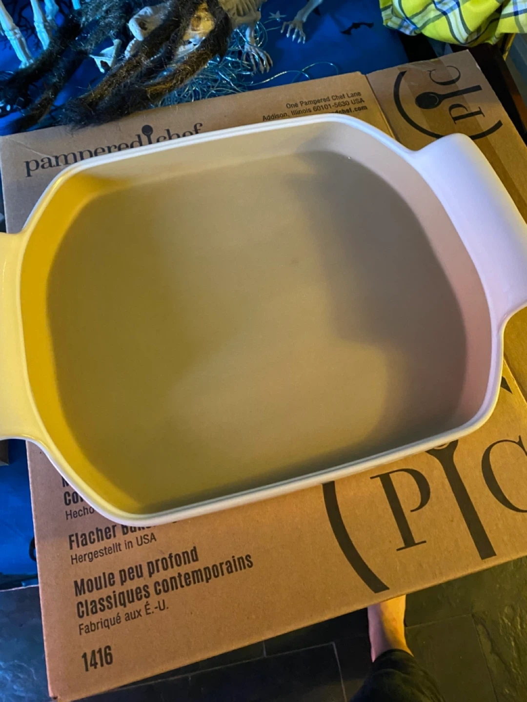 10Selling a Pampered Chef Contemporary Classics Shallow Baker! It's brand new and ready for your next baking adventure. Comes with the original box. Box is in giftable condition just the tape was cut to check inside.