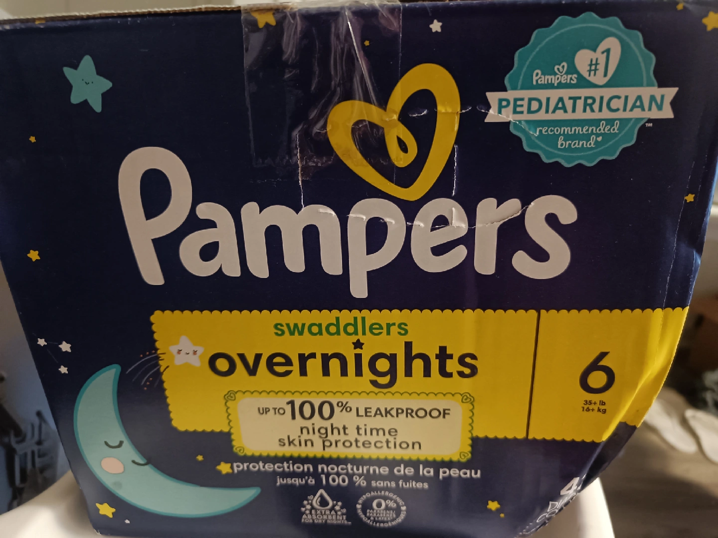 37Selling a box of Pampers Swaddlers Overnights in size 6! These diapers are designed for nighttime use, offering up to 100% leakproof protection and gentle skin protection. There are 42 diapers in the box. Perfect for keeping your little one dry and comfortable through the night. ideal for weight 16 Kg
