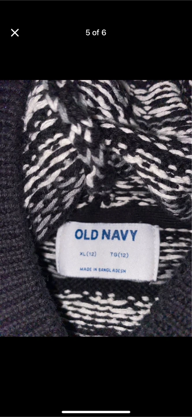 26Cozy Old Navy hoodie in a black and white knit pattern! It's marked as size XL (12). Perfect for layering up on those chilly days . Pj new $25