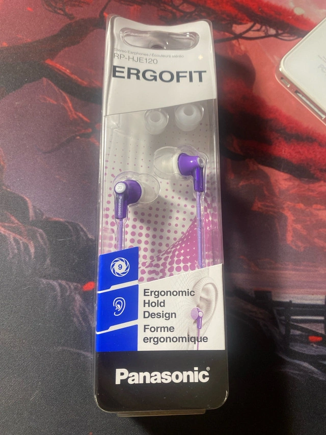 10Listen to your favourite tunes with these brand new Panasonic ErgoFit earbuds, model RP-HJE120-V in purple! These earbuds feature an ergonomic design for a comfortable fit and deliver clear, quality sound. Still sealed in the original packaging, never opened, perfect for enjoying music, podcasts, and audiobooks on the go. Specifications: * Model: RP-HJE120-V * Brand: Panasonic * Colour: Purple * Ergonomic Design * Neodymium Magnet If the ad is still up, then yes, these earbuds are still available!