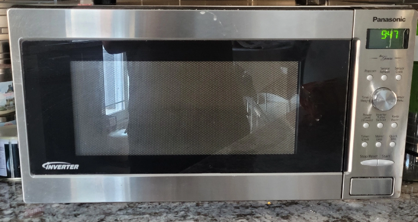 Selling a Panasonic Inverter microwave oven. It features sensor reheat and cook functions, as well as an inverter turbo defrost setting. It also has a keep warm function.