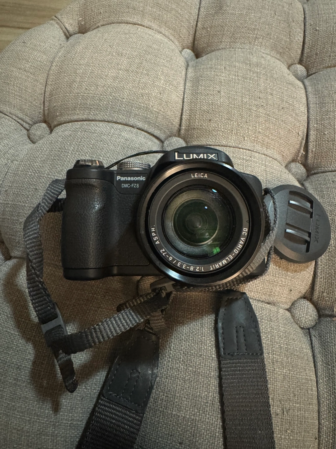 Selling a Panasonic Lumix DMC-FZ8 digital camera. It's in great condition and ready for a new owner! Perfect for capturing memories on the go. Comes with a lens cap and strap.