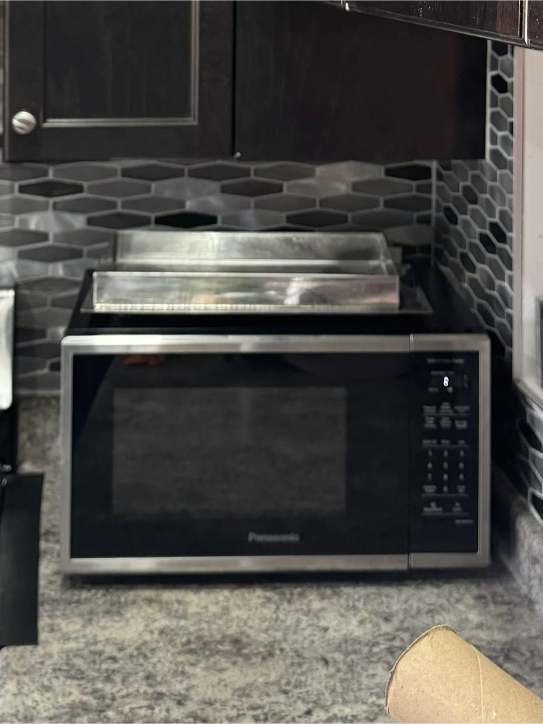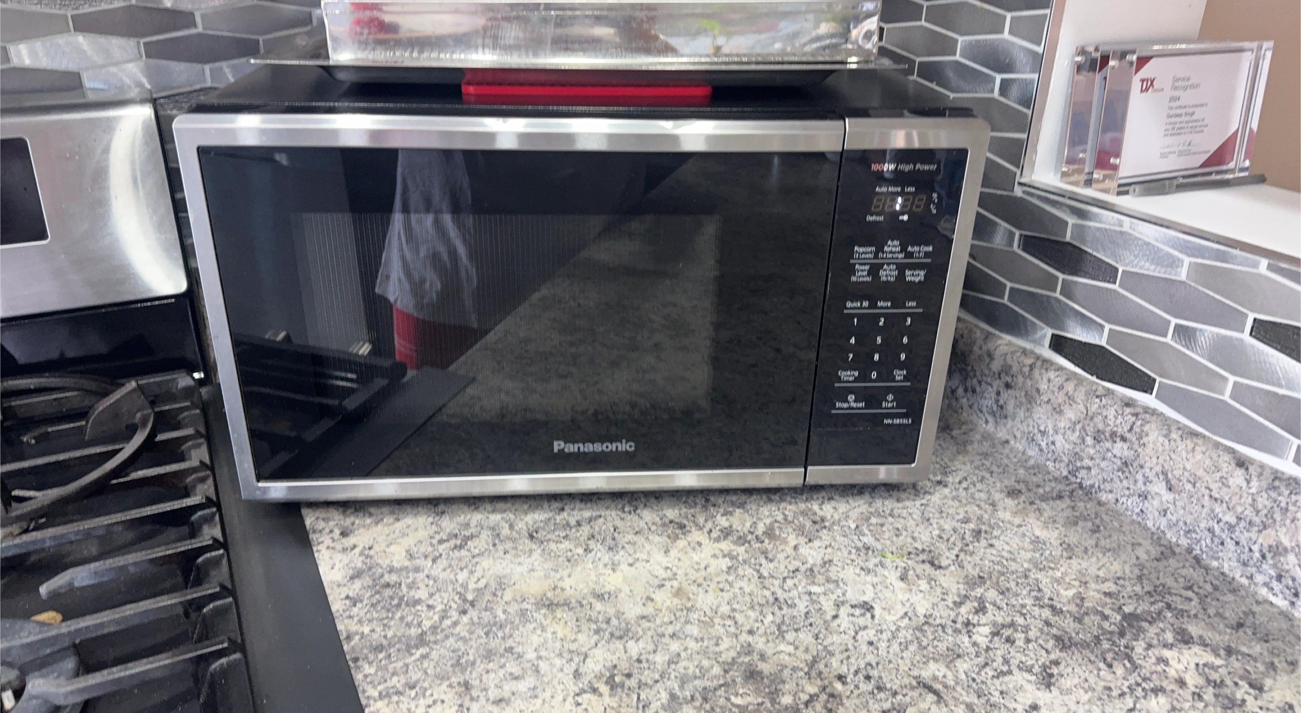 20Moving sale!! Very good condition, only one year old Panasonic countertop microwave oven, stainless steel trim with a black glass front. Here are some key details visible: • Brand: Panasonic • Power: 1000W (High Power) • Control panel: Touchpad type with digital display • Functions include: • Auto Reheat and Auto Cook options • Popcorn, Power Level, and Auto Defrost settings • “Quick 30” button for quick heating in 30-second intervals • Numeric keypad (0–9) for time and weight input • “More / Less” buttons to adjust cooking time or power • “Stop/Reset” and “Start” buttons • Clock/Timer setting This model is designed for countertop use, ideal for heating, defrosting, and cooking. It looks like a model from the Panasonic NN-SN686S or NN-SN67KS