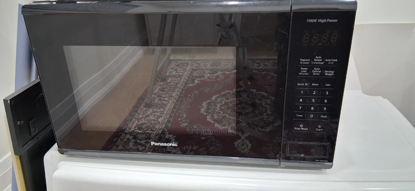 10Selling a Panasonic microwave in great working condition! This model is the NN-SG626B and features 1100W of high power for quick and efficient cooking. It has various settings including popcorn, auto reheat, and auto cook. Plus, it has a quick 30-second button for easy use