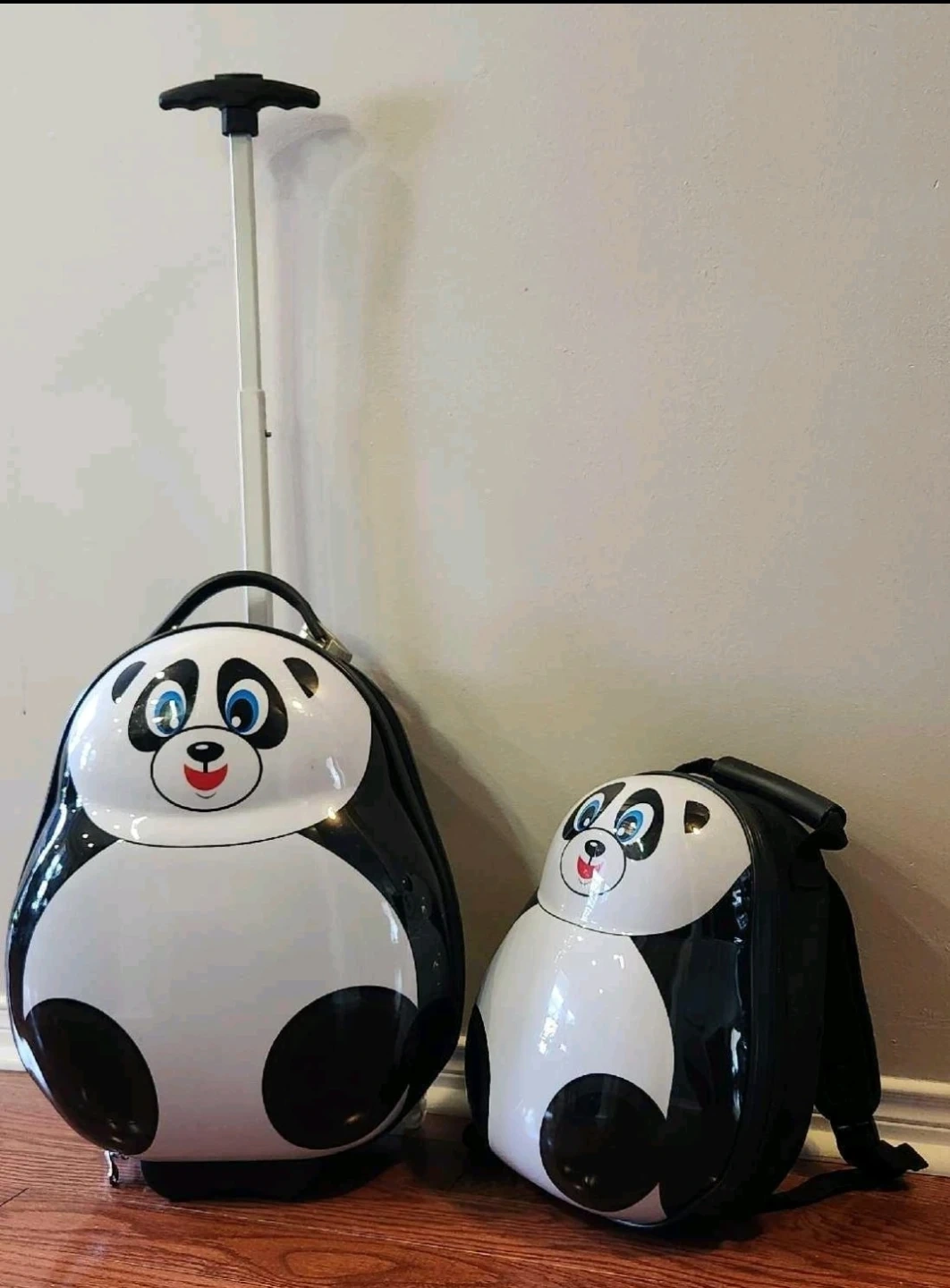 20Super cute panda themed luggage set! Includes a rolling suitcase and a matching backpack. Perfect for kids!