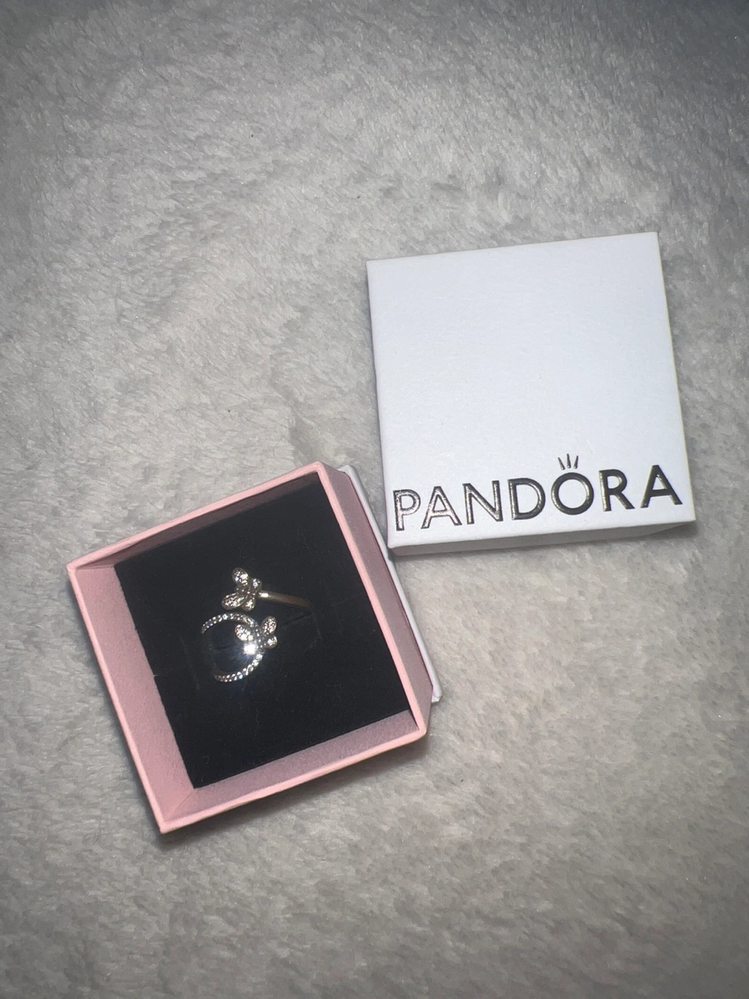 Silver ring. Two butterflies. Clear stones. Comes in original Pandora box. I can clean it so it’s not a grey colour if you decide to buy