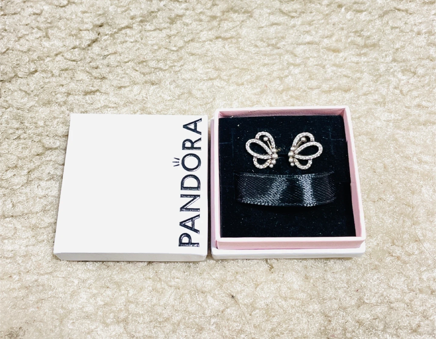 60These adorable Pandora butterfly stud earrings are in great condition and come with the original box! They're perfect for adding a touch of whimsy to any outfit. If you're looking for a cute and stylish accessory, these earrings are a great choice!