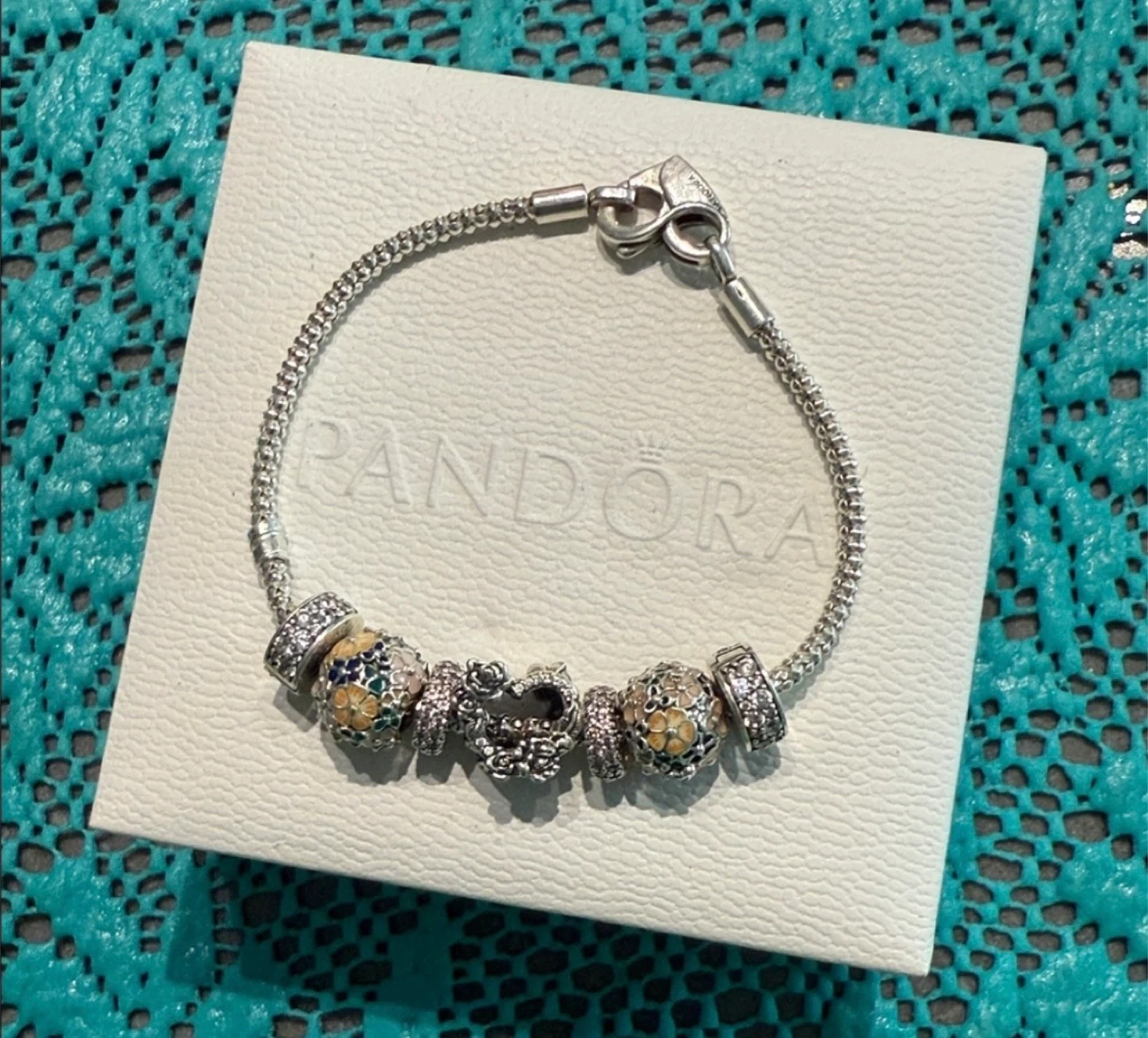Selling a lovely Pandora charm bracelet, perfect for gifting or keeping it safe. The bracelet features a few cute charms. It's in great condition and ready for a new home!