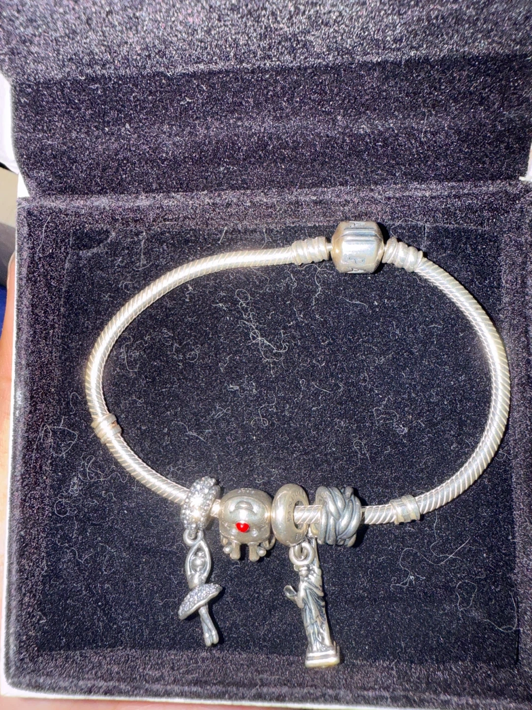 Selling a lovely Pandora charm bracelet with a few charms! It comes with the original box for safekeeping. A perfect addition to your collection or a thoughtful gift for someone special