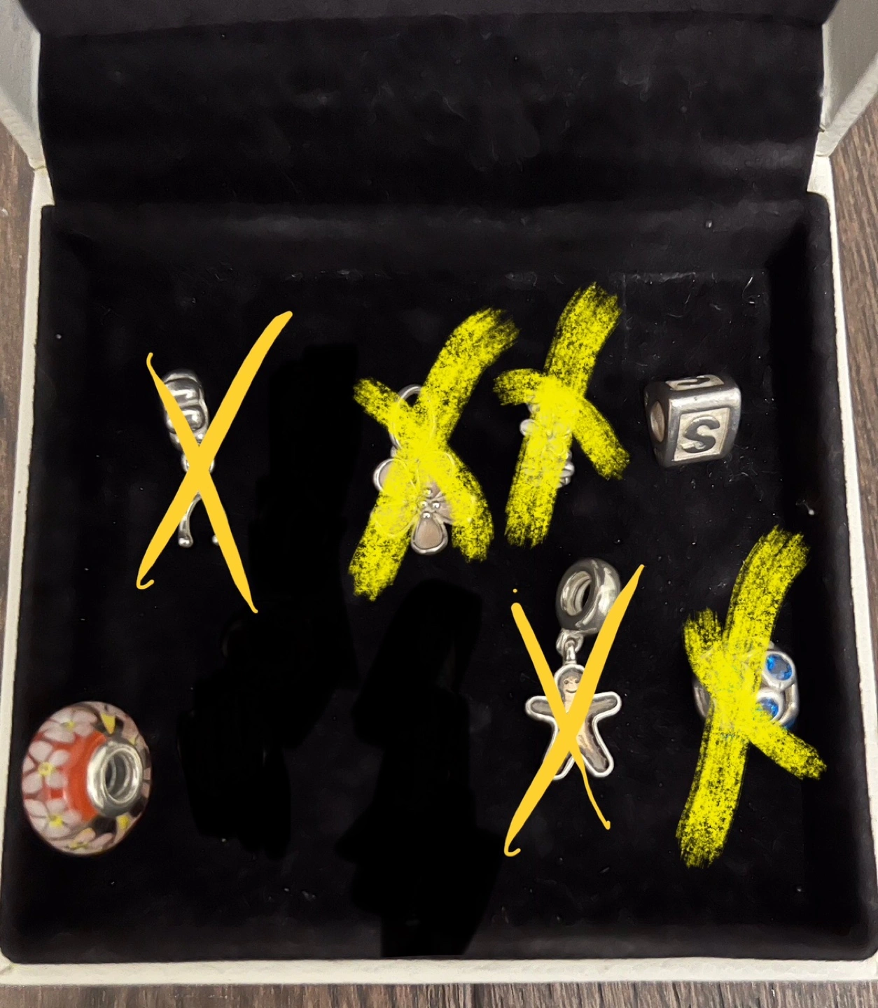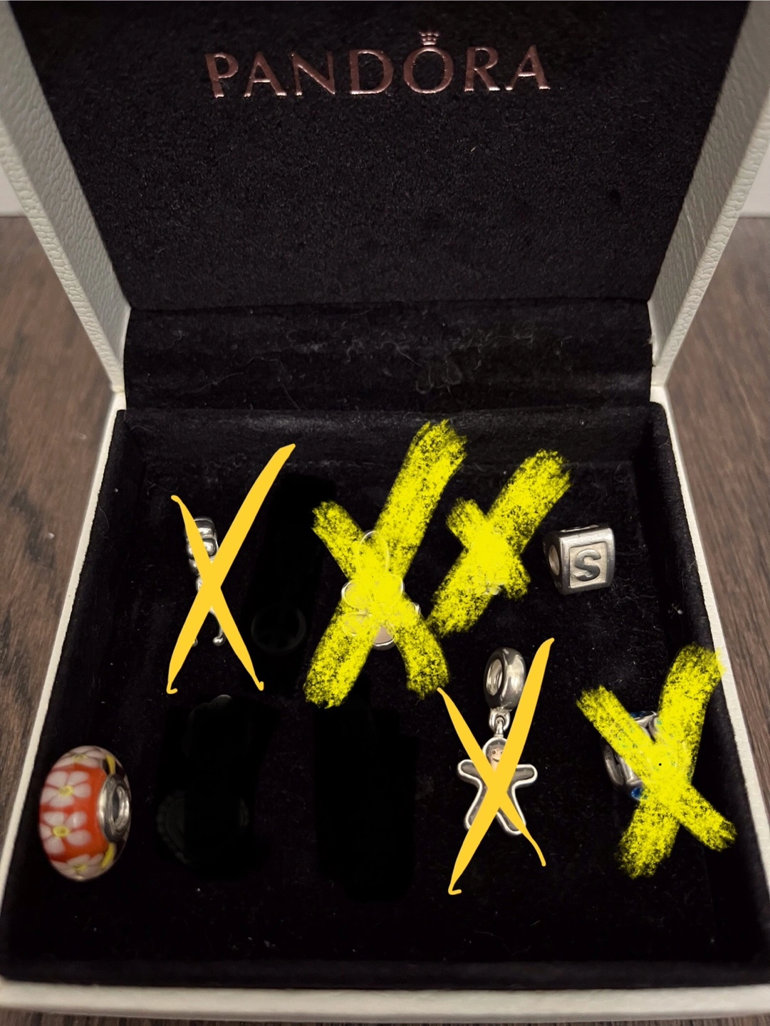 58Pandora charms. Great condition. $20 each. Check out my other pieces. Listed: Wish bone - Make a Wish-sold Pink cherry blossom -sold White daisy flower spacer- sold Letter S Orange flower murano glass gingerbread man - sold Blue bead - sold