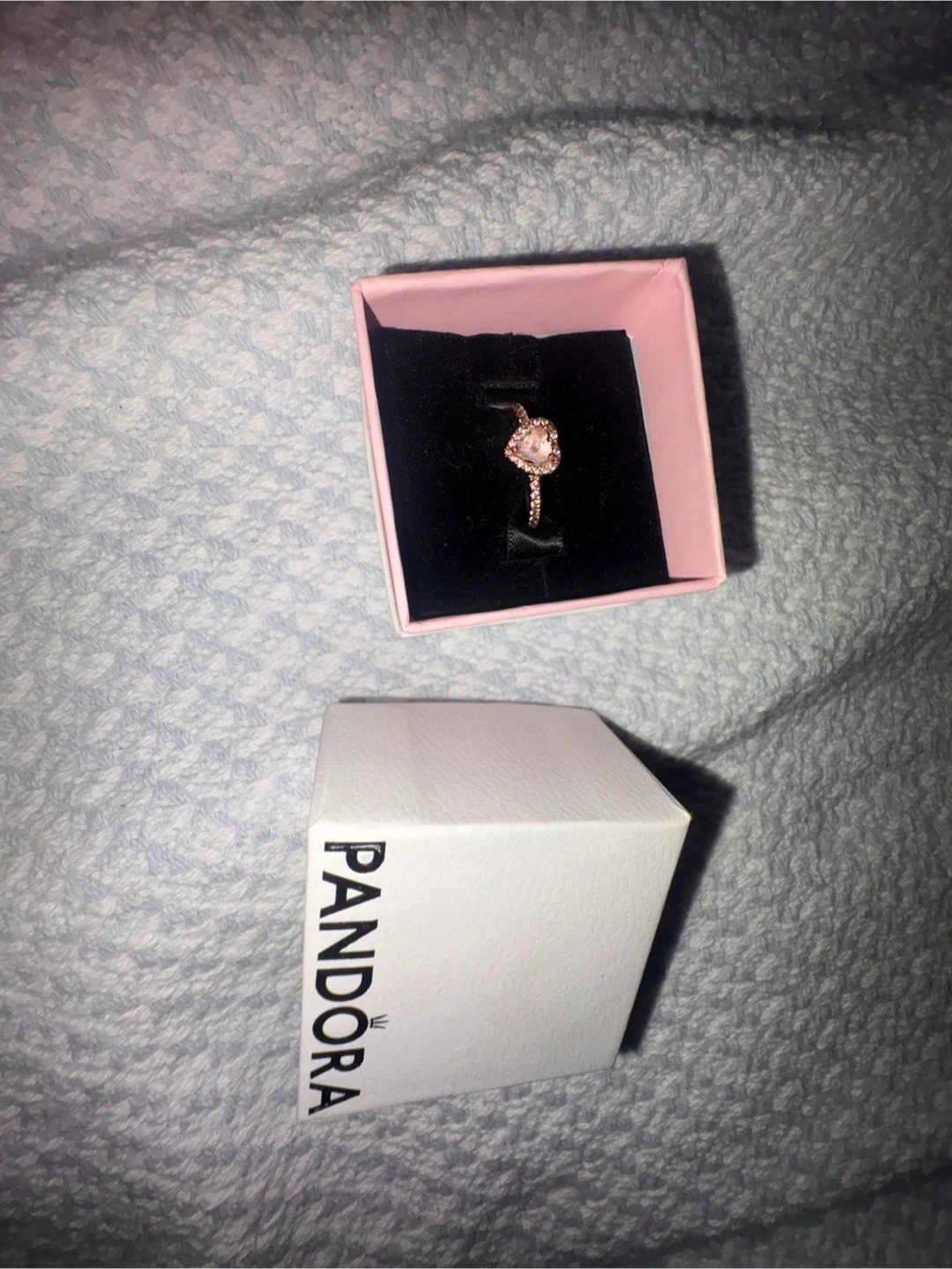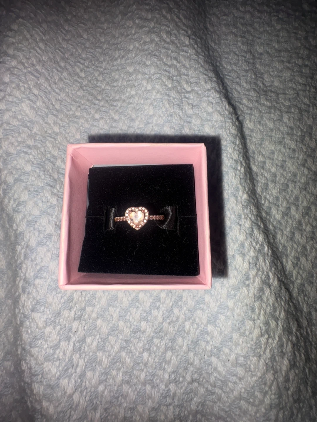 Selling a beautiful Pandora Rose heart ring. It comes with the original box and is in great condition. The ring has a lovely rose gold colour and a heart-shaped stone. Perfect for adding a touch of elegance to any outfit