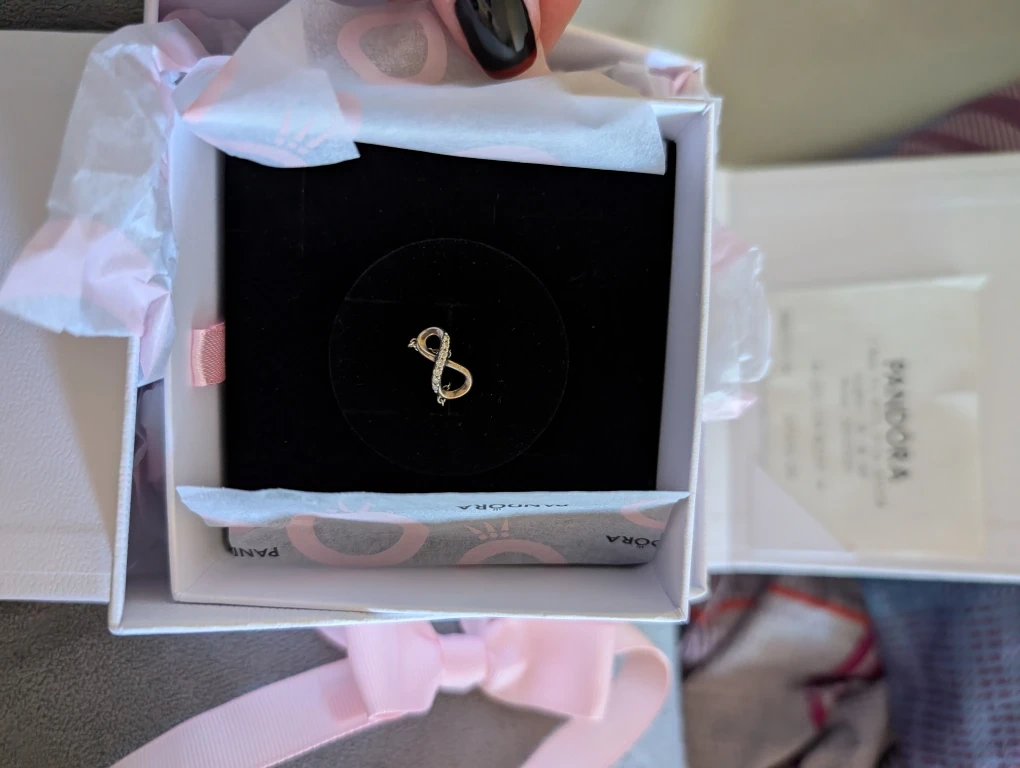 10Selling a used Pandora Infinity Knot Charm with necklace.It comes in the original box, perfect for gifting or treating yourself. This charm is a beautiful symbol of endless love and connection.
