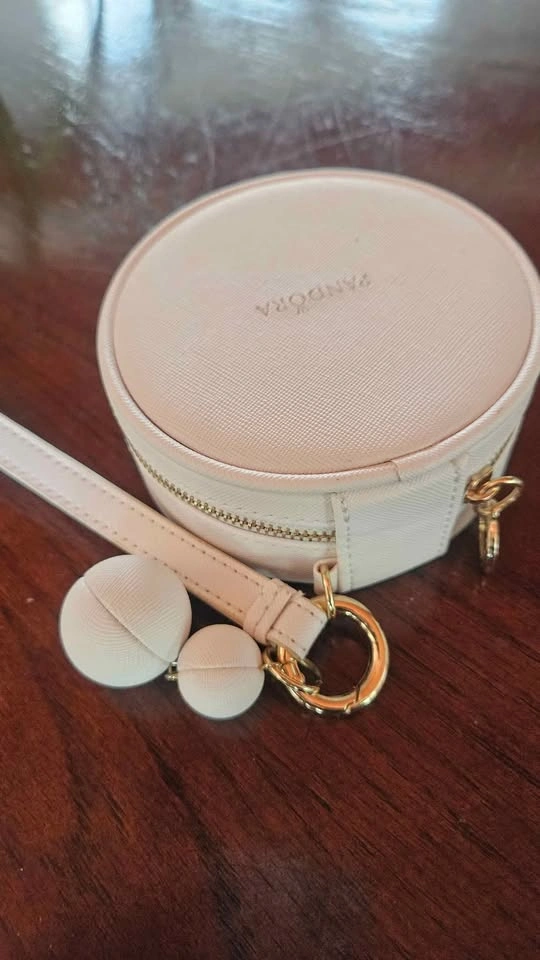 Excellent condition. Pandora leather white round travel jewelry box. Never used, received as a gift. Perfect gift item for her.