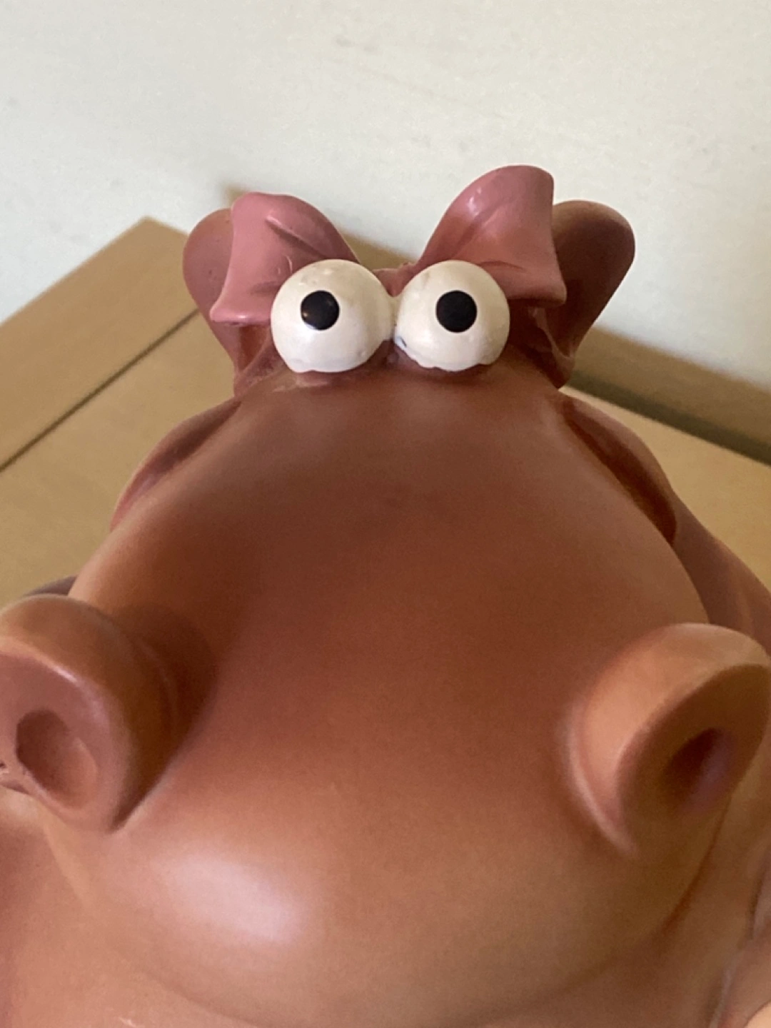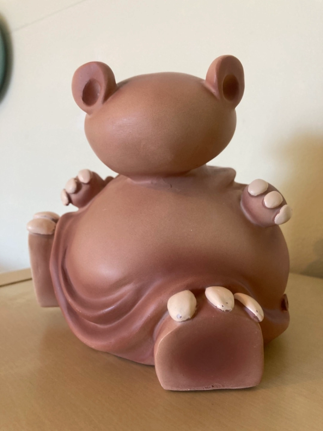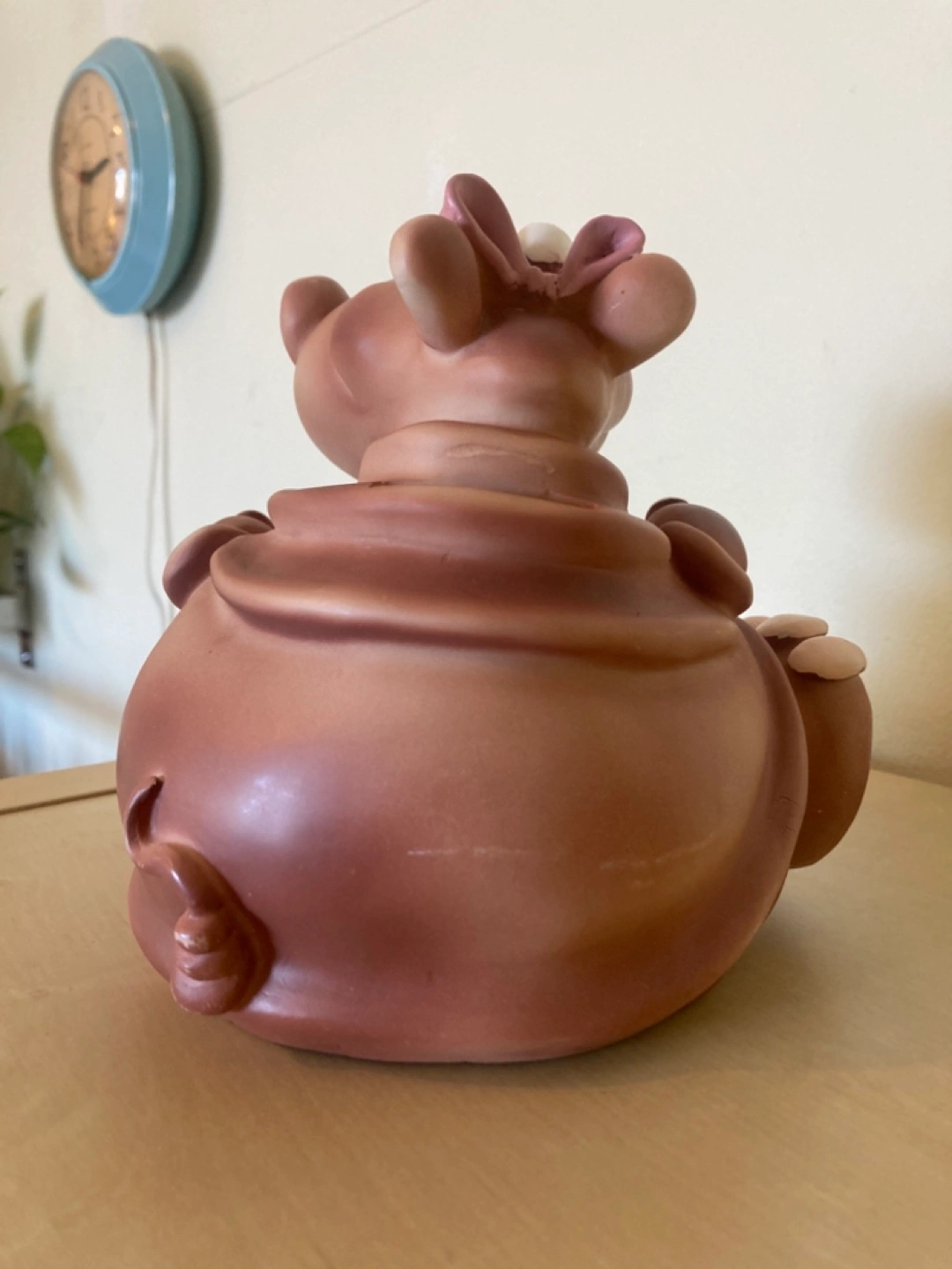 100Collectible Paolo Chiari hippopotamus with bow coin bank, made of resin, adorable and rare. 6” high, 6” wide and 6” deep. Pick-up only near Dufferin Station.