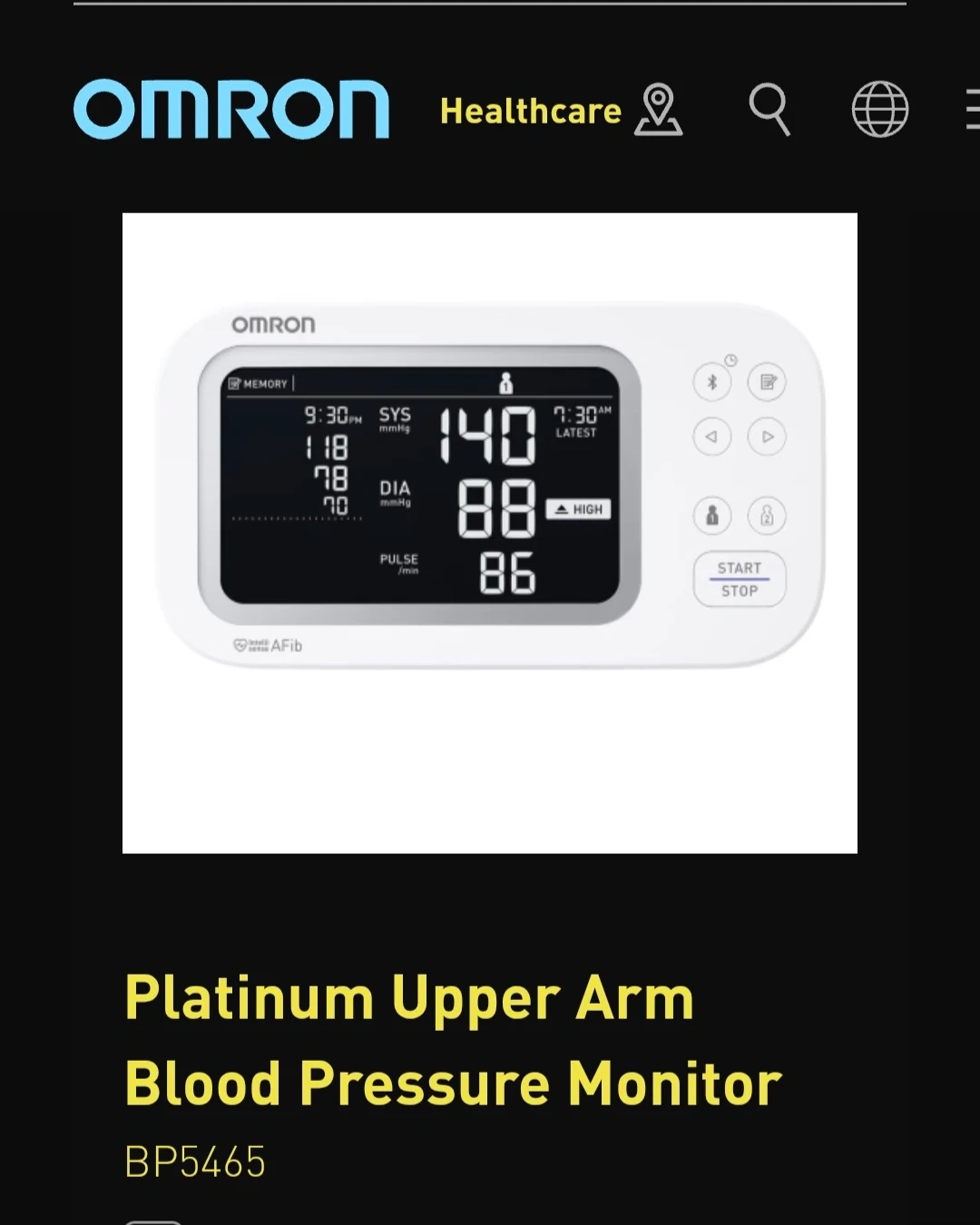 Omron Platinum Upper Arm Blood Pressure Monitor BP5465