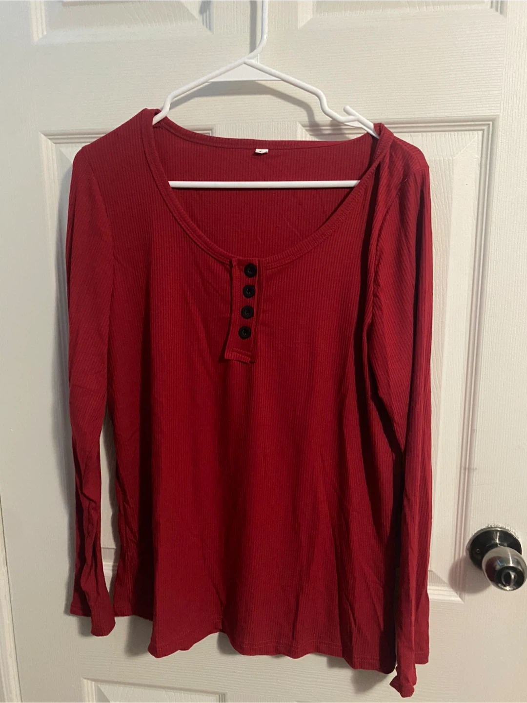 Women's Red Ribbed Long Sleeve Henley Shirt