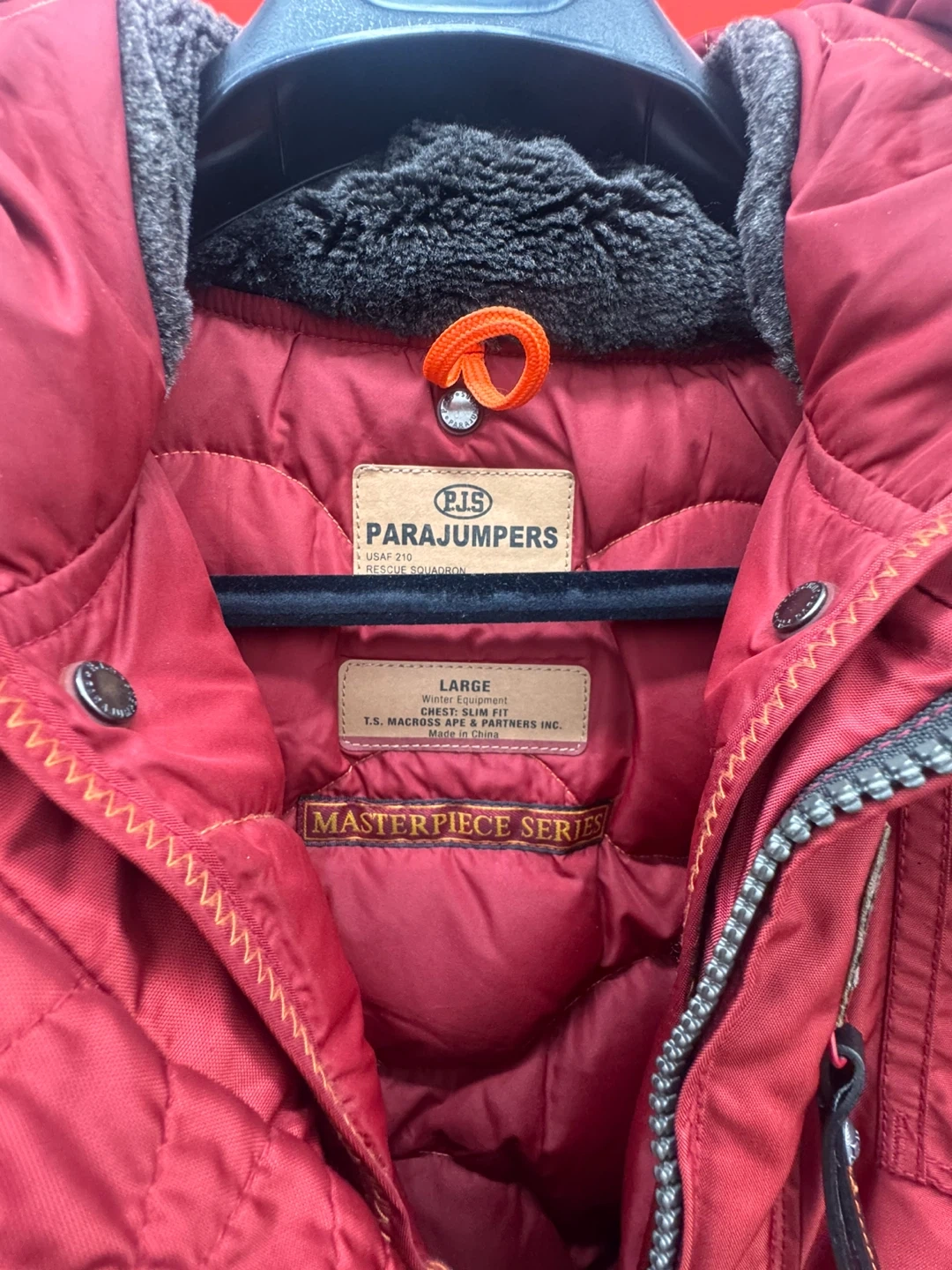 10Selling a Parajumpers winter jacket in size large. It's a stylish and warm jacket, perfect for the Canadian winter. The jacket is red and part of the Masterpiece Series. Feel free to message me with any questions!