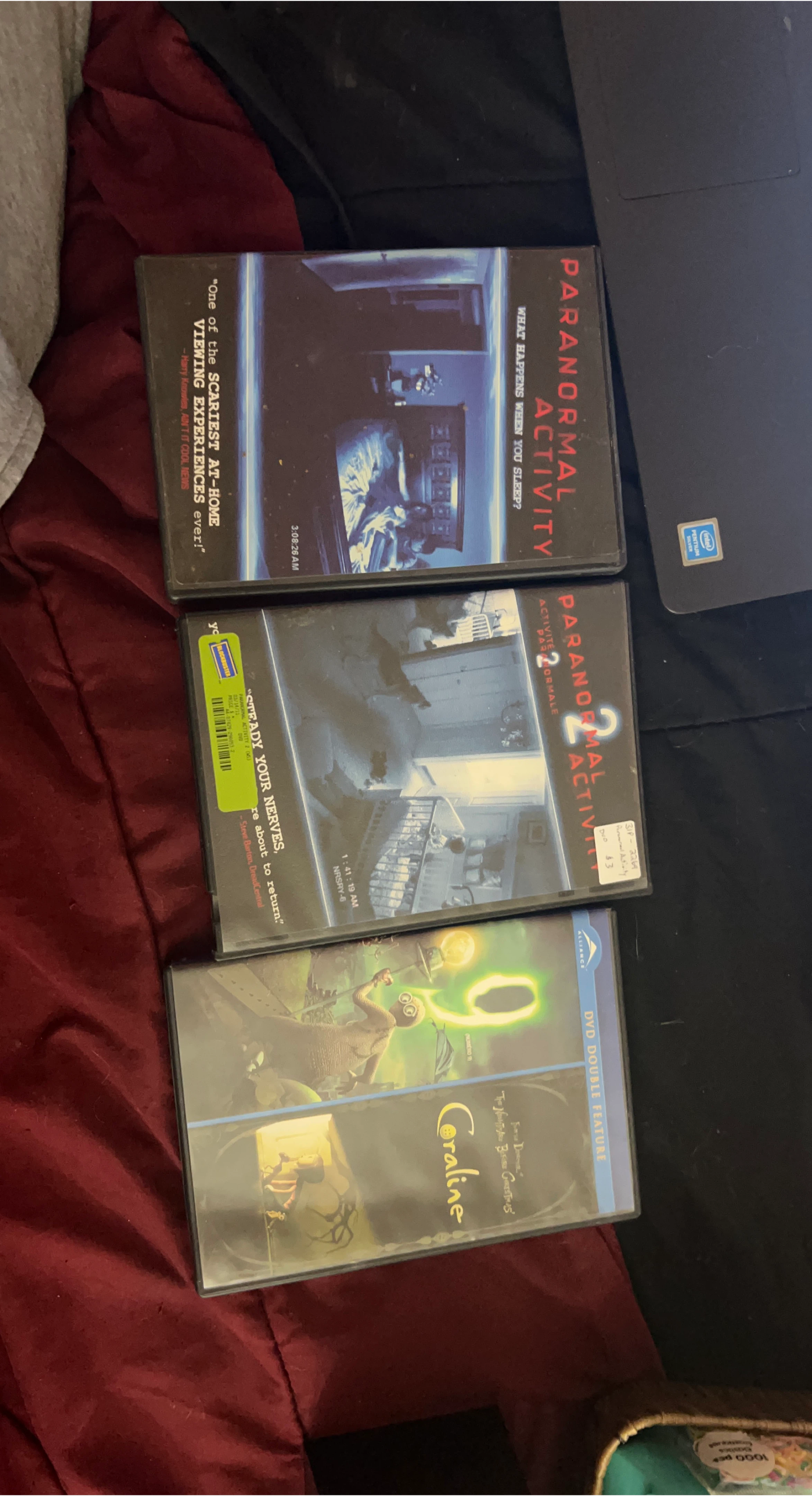 5Selling a collection of DVDs including Paranormal Activity 1 & 2, and Coraline. Perfect for movie nights!