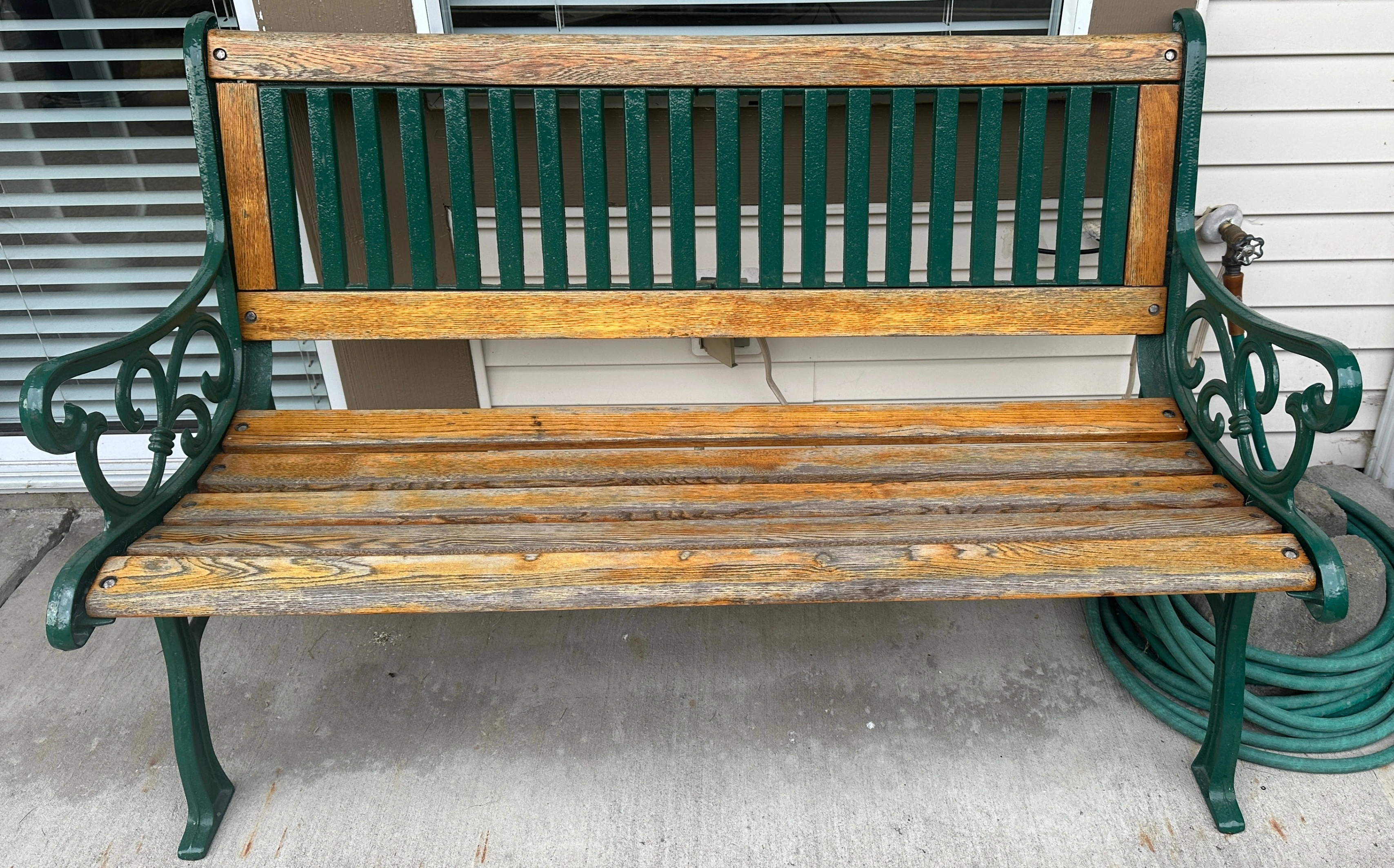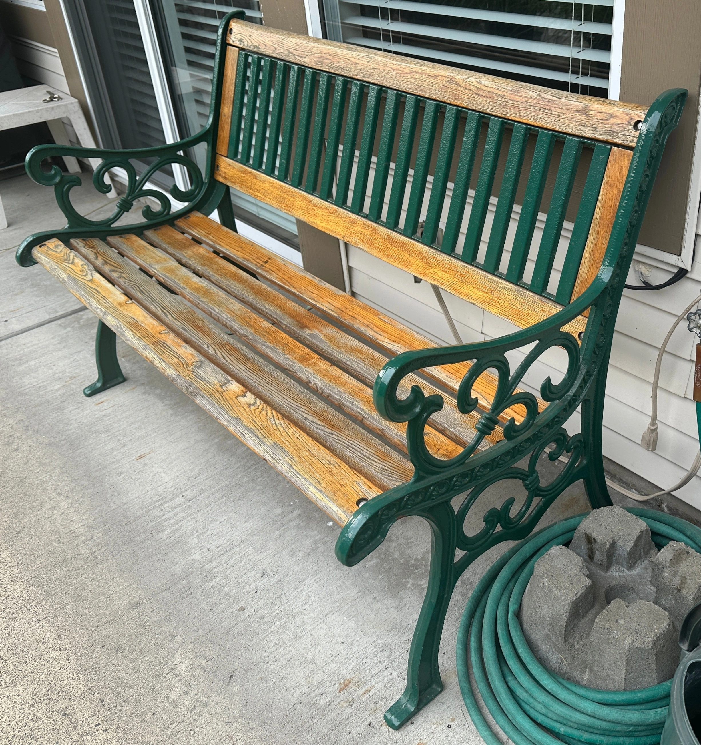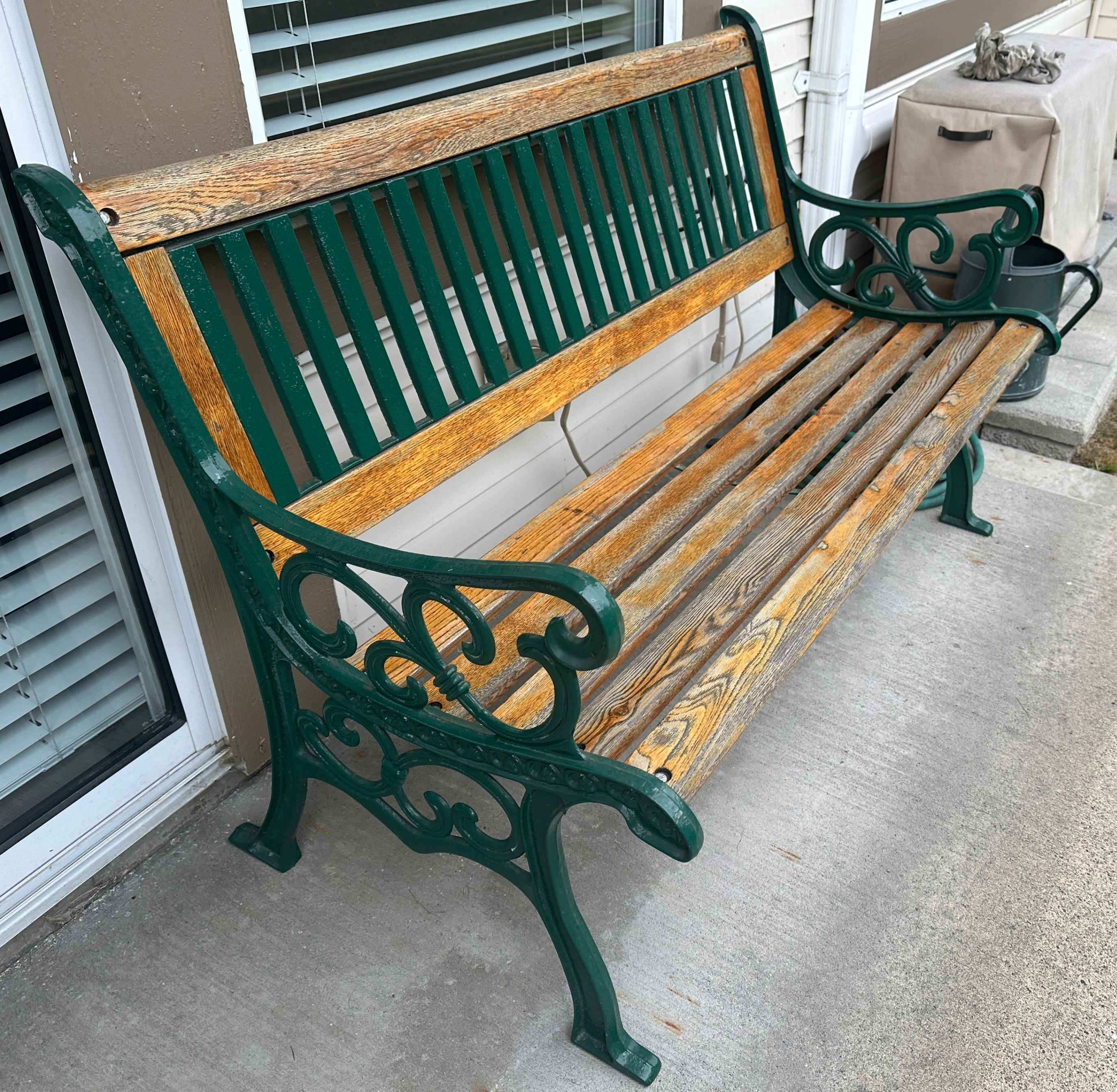This was rebuilt and refinished a couple years ago 50" wide, 25" deep, 17" at seat front, & 31" high at the back.