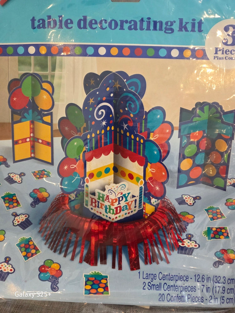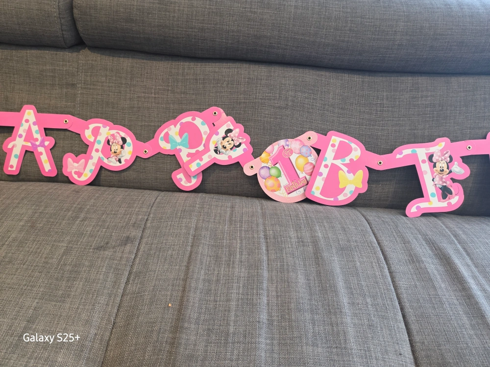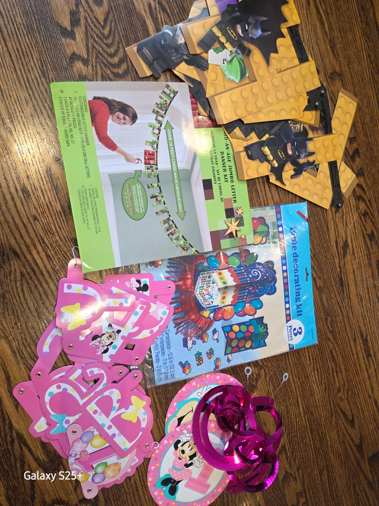 Selling a bundle of party decorations! Included is a table decorating kit with a large centerpiece (12.6 inches) and two smaller centerpieces (7 inches), plus confetti. Also included are various banners, including a Minnie Mouse themed 'A Baby is 1' banner and a customizable Minecraft jumbo letter banner that's over 10 feet long. Perfect for adding some fun to your next celebration! We even have Lego Batman banner, fun for all ages!