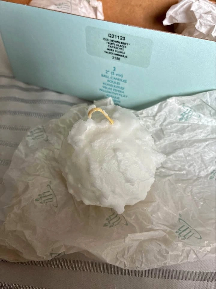 3 x 2 inch snowball candles made by party lite new in original box .. light scent
