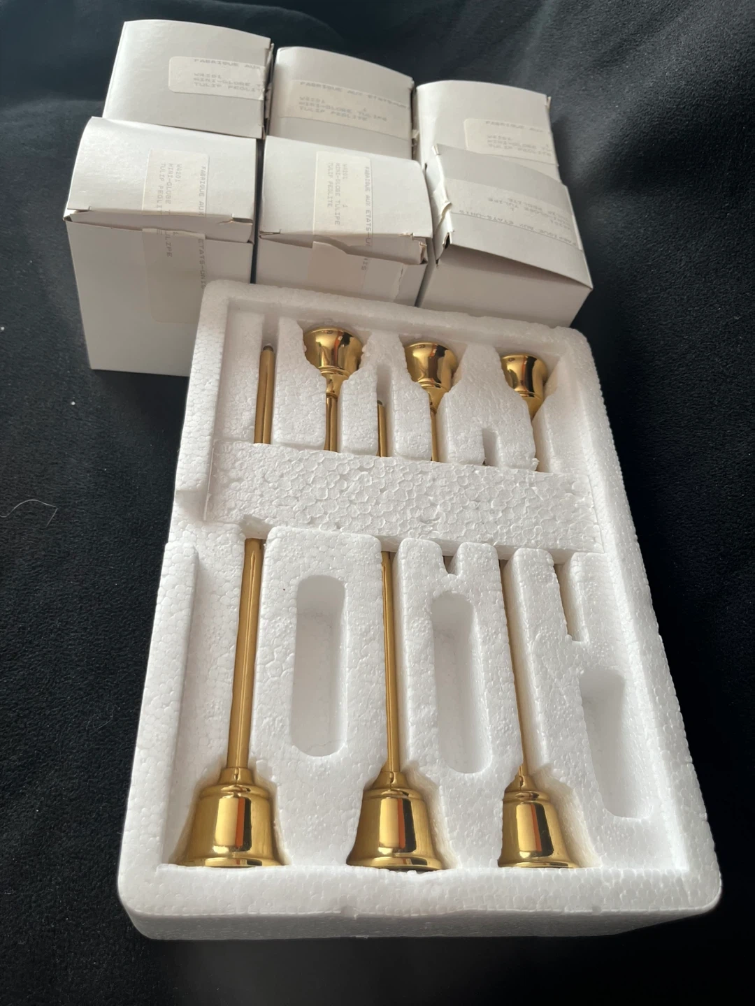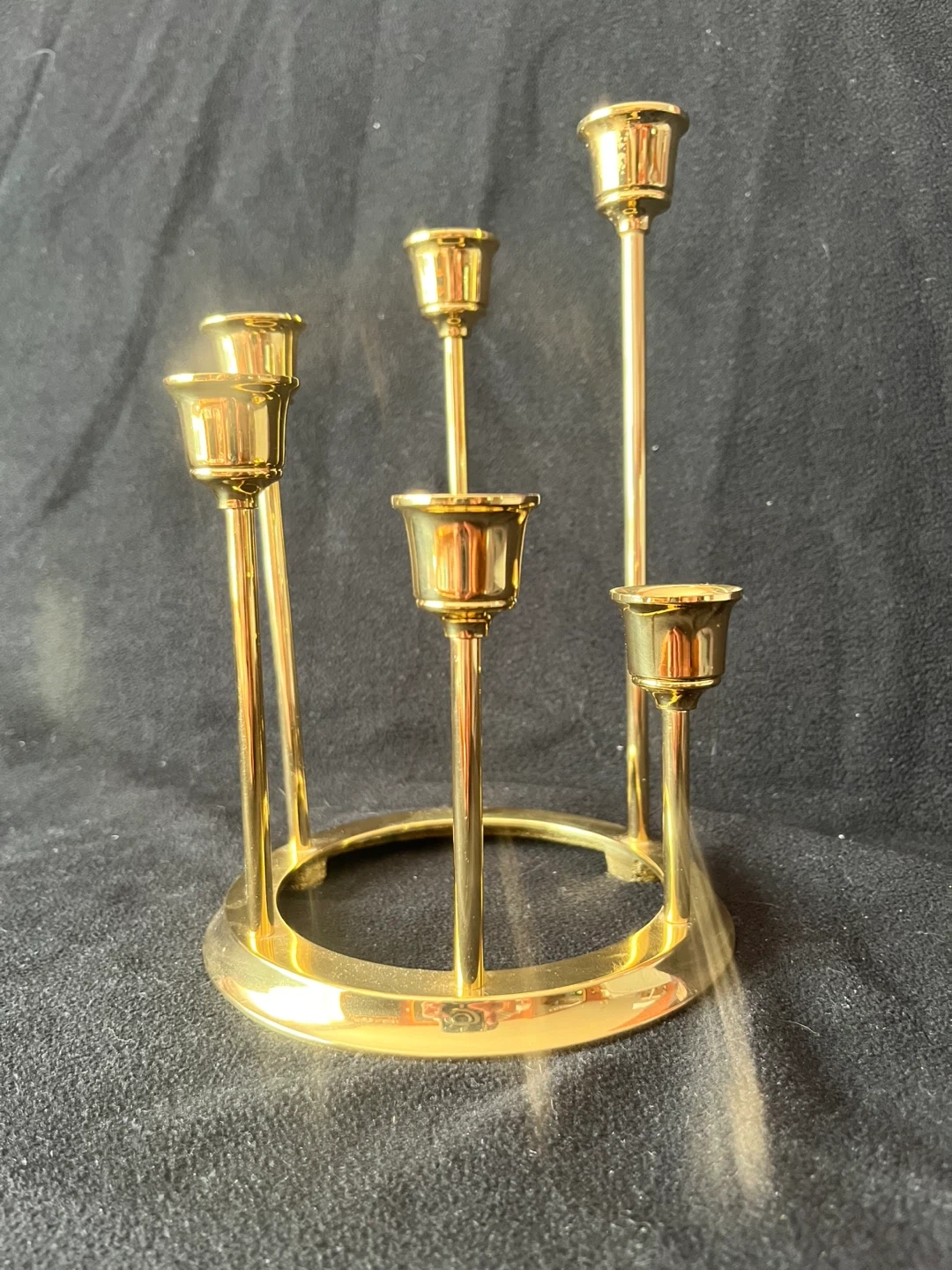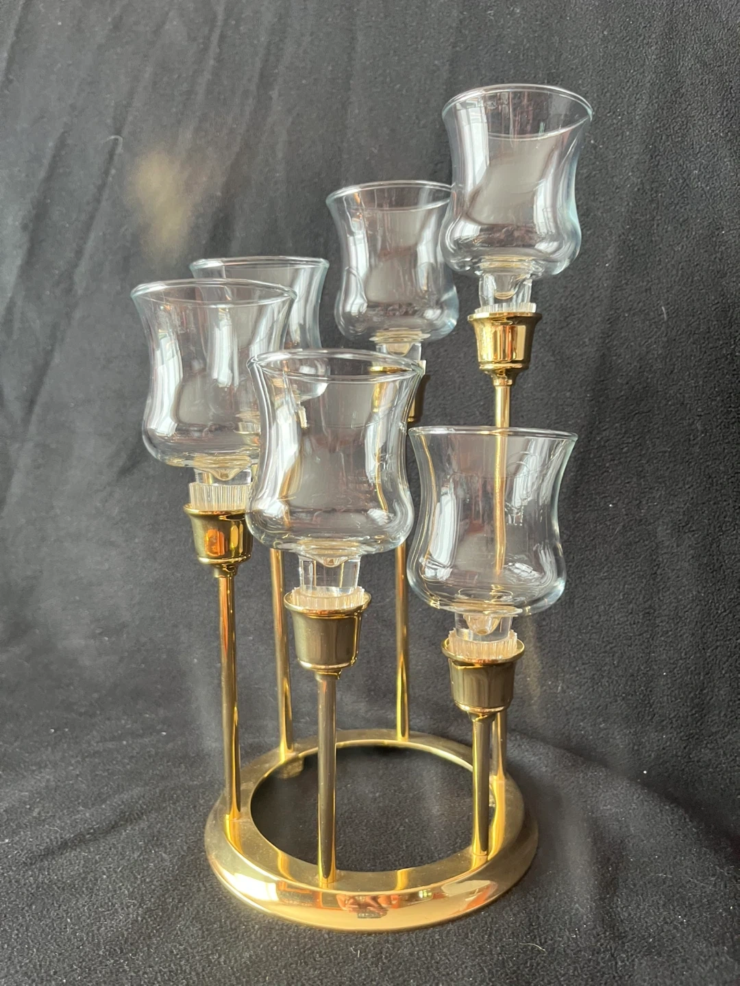 Add a touch of elegance to your home with this PartyLite candlestick holder! It's a beautiful gold colour and can hold multiple candles. Perfect for creating a warm and inviting atmosphere in any room. Also included are 6 tulip votive holders that can be used with candlestick holders.