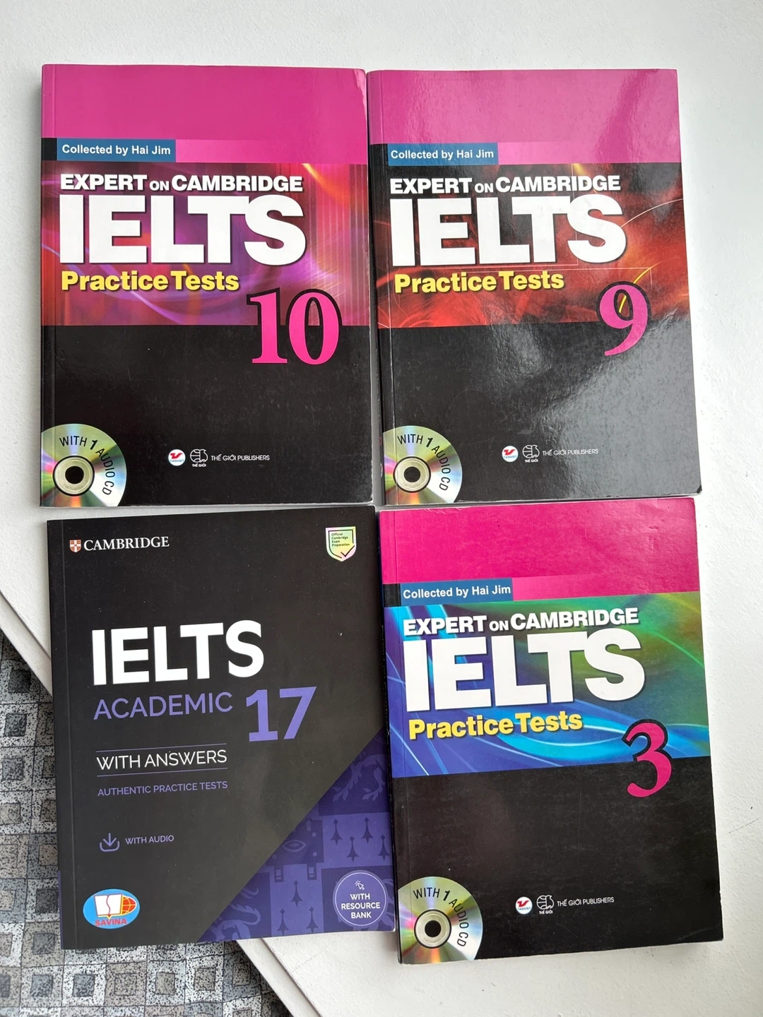 Selling a few Cambridge IELTS practice test books. Includes Expert on Cambridge IELTS Practice Tests 10, 9, 3 and Cambridge IELTS Academic 17 with answers. All books come with audio CDs
