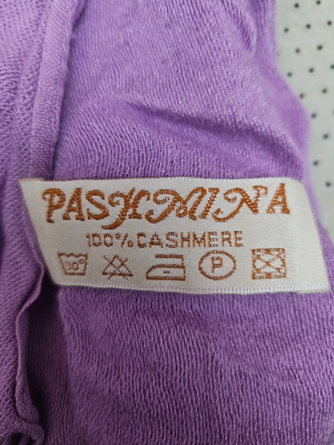 1000+This is a lovely pashmina scarf made of 100% cashmere. It's a beautiful purple colour and would be perfect for adding a touch of elegance to any outfit. It's in great condition and ready for a new home