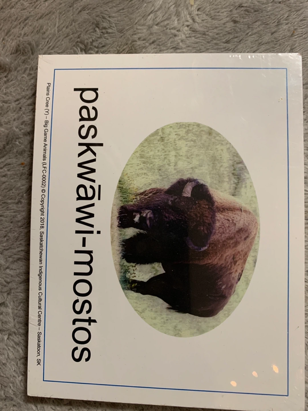 10Selling a card titled 'paskwāwi-mostos' from the Plains Cree Big Game Animals series. It's from the Saskatchewan Indigenous Cultural Centre in Saskatoon, SK. Copyright 2018