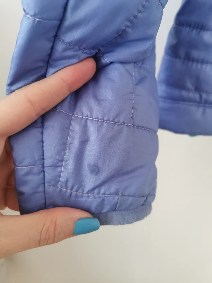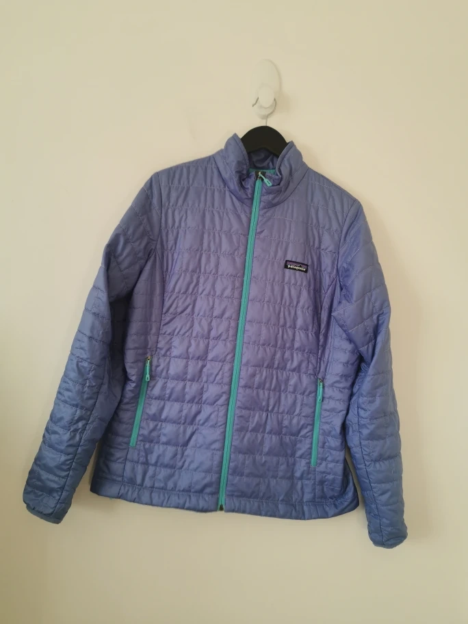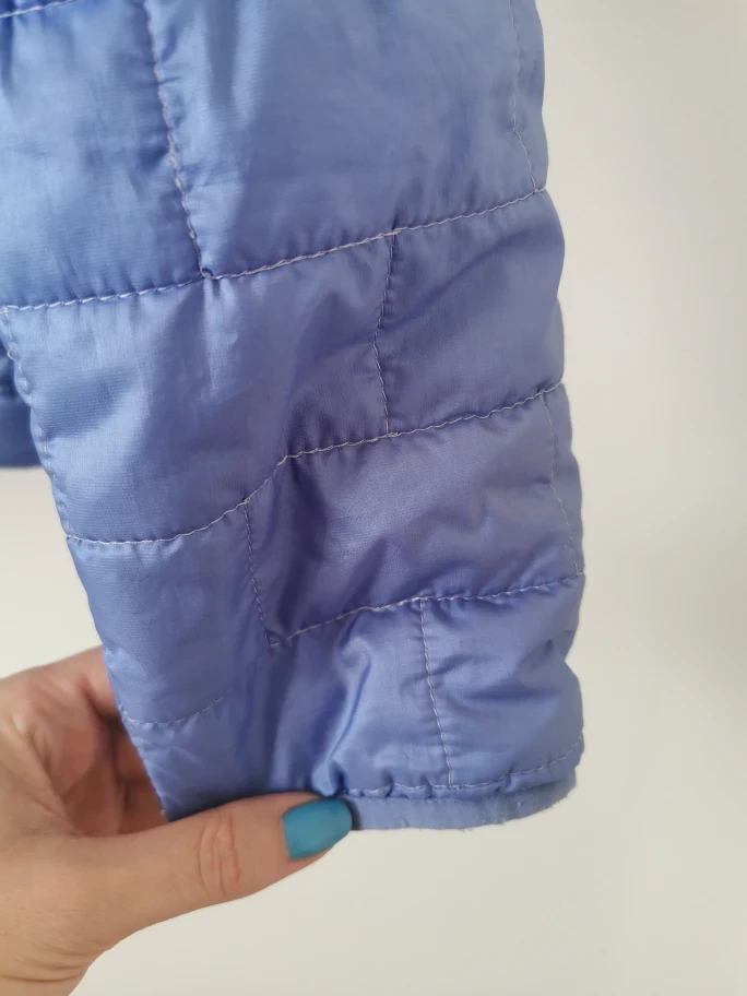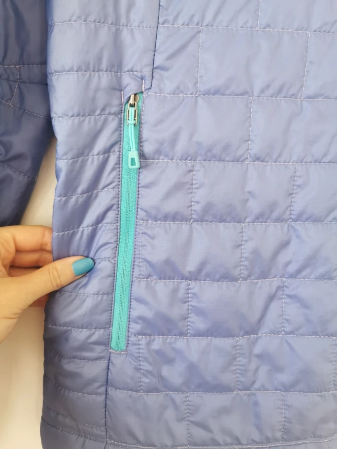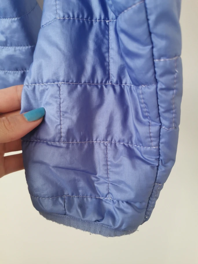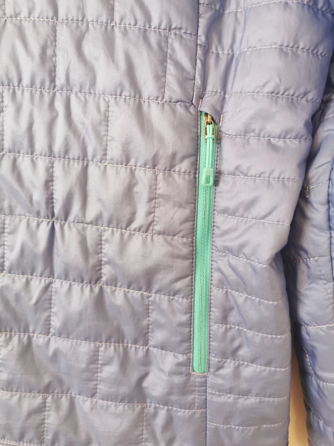 Lightweight, quilted jacket. Teal zipper accents.