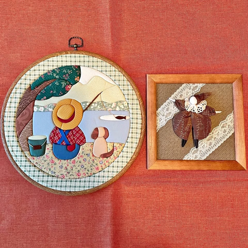 Pick up at Don Mils & Steeles This set includes two adorable pieces: a circular piece depicting a person fishing with a dog, and a square framed 3D art featuring a small fairy figure with lace details. Perfect for adding a cozy, playful touch to any room. Size: Circular: 10.6” diameter Square: 7.1” x 7.1” Condition: Excellent vintage condition