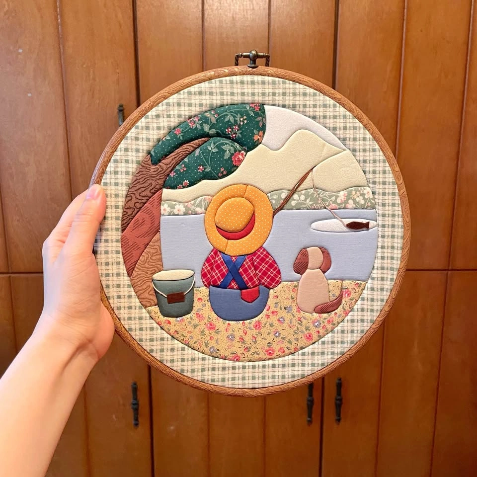 86Pick up at Don Mils & Steeles This set includes two adorable pieces: a circular piece depicting a person fishing with a dog, and a square framed 3D art featuring a small fairy figure with lace details. Perfect for adding a cozy, playful touch to any room. Size: Circular: 10.6” diameter Square: 7.1” x 7.1” Condition: Excellent vintage condition