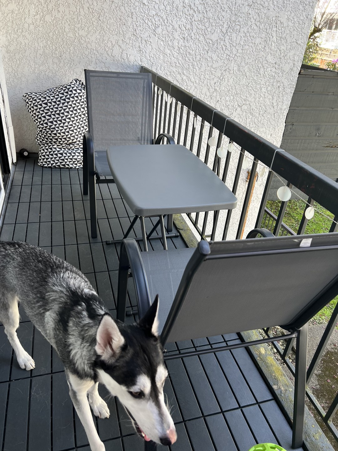 82Canadian Tire outdoor chairs and a foldable table Dark gray color Barely used Good condition as new Delivery option at extra $50+ depending on the location Pickup at 1045 W 14th Ave