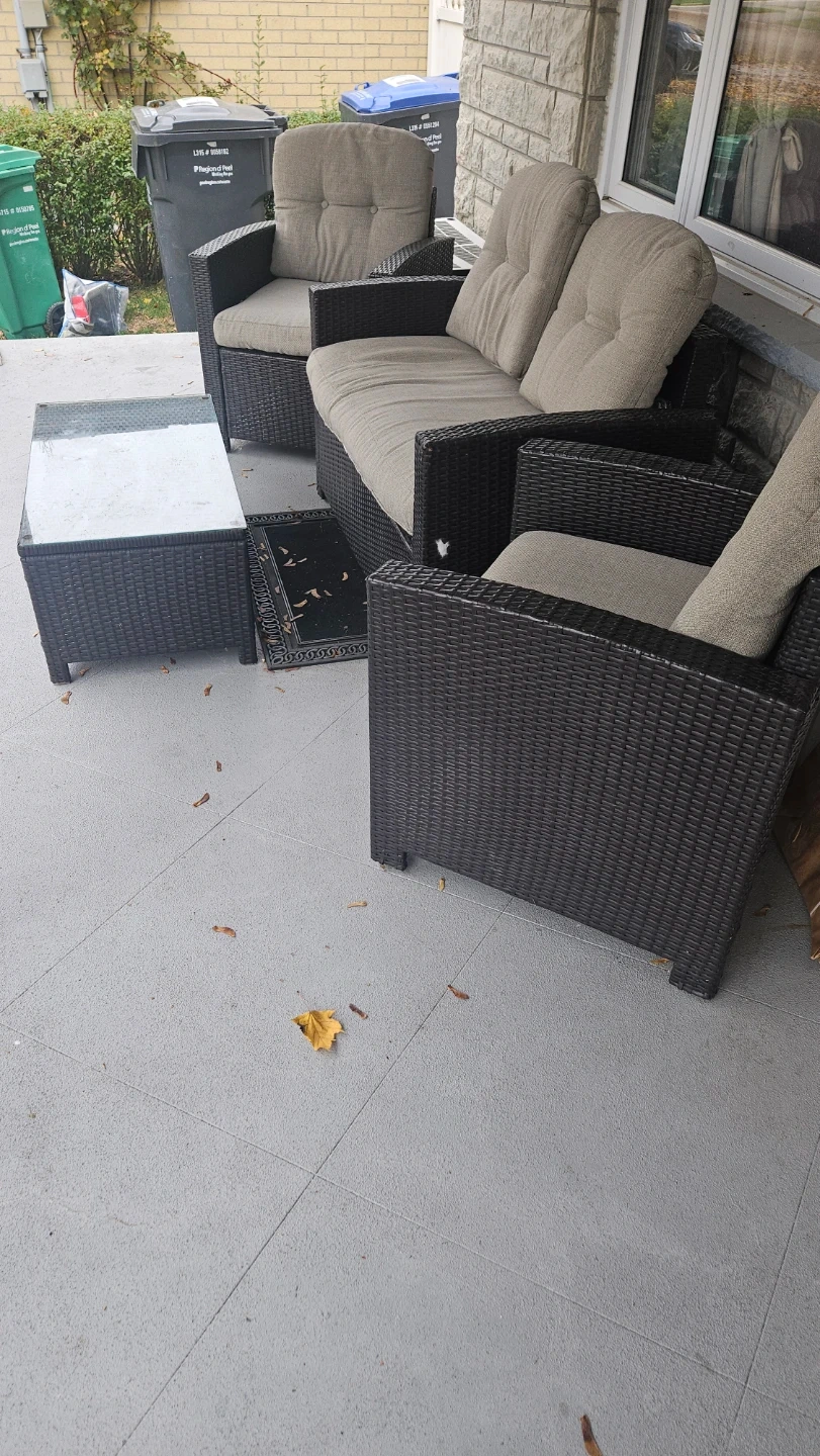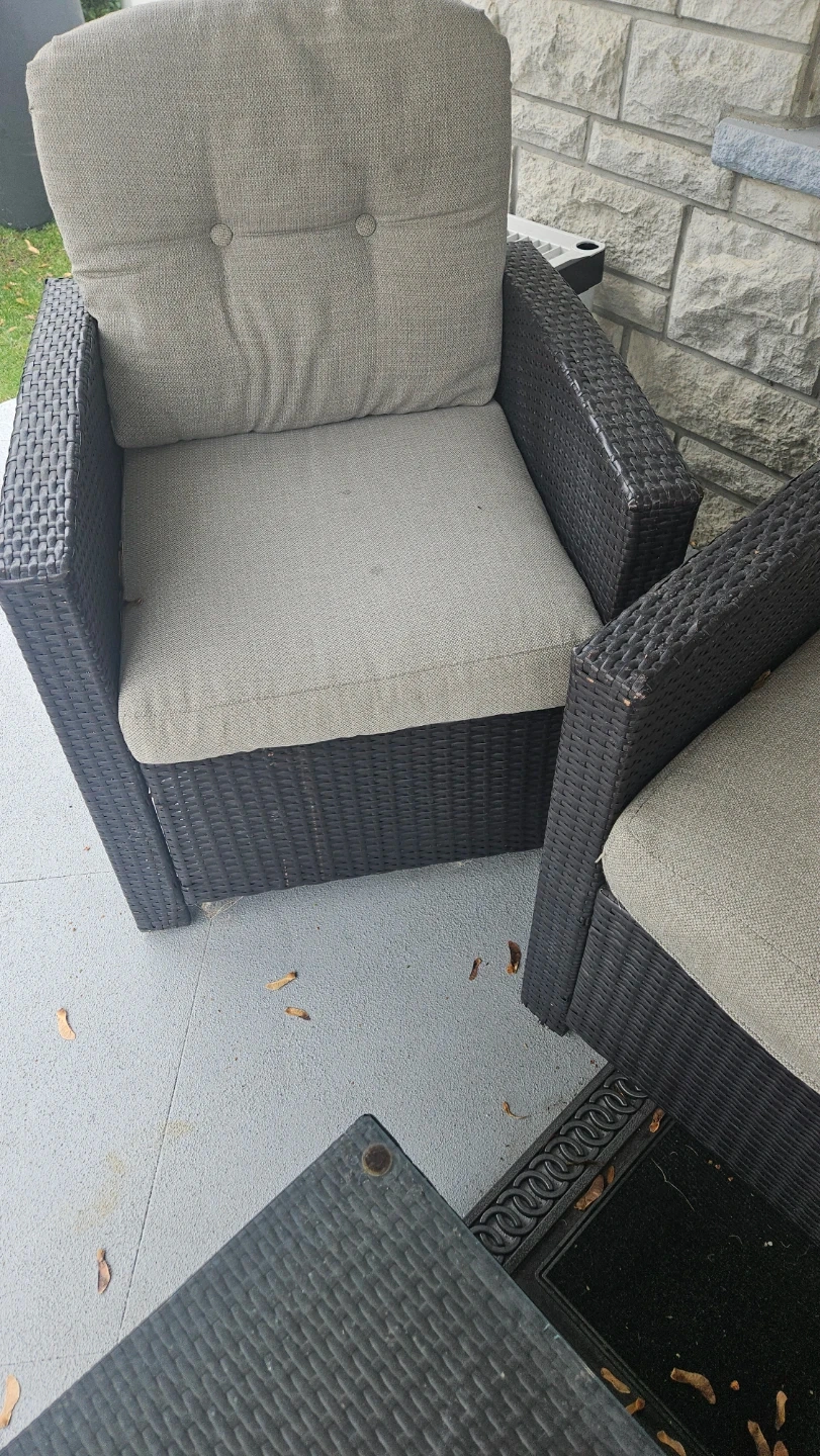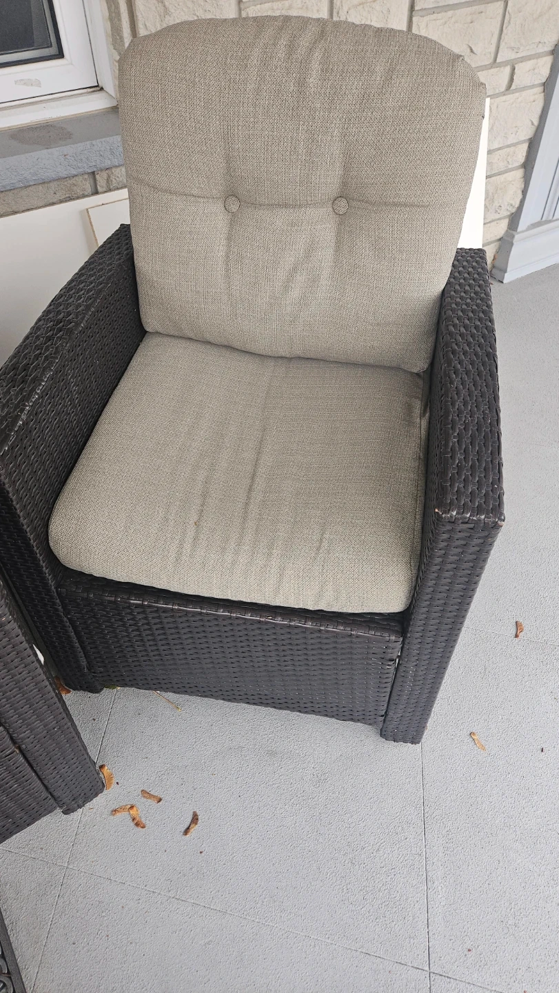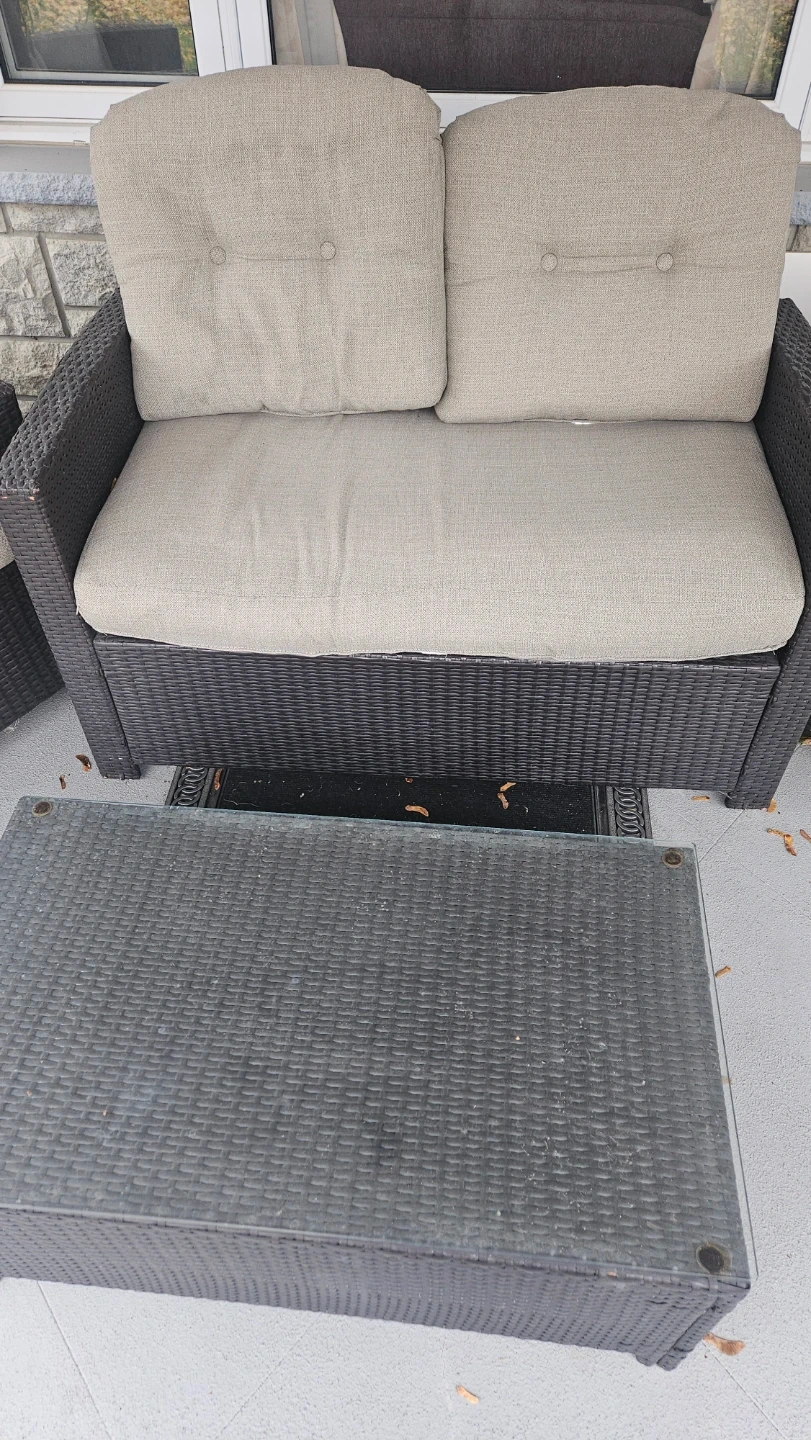 60Selling a patio set that includes a loveseat, two chairs, and a table. It's perfect for enjoying the outdoors on your porch or in your backyard! The set is in good condition and ready for a new home.