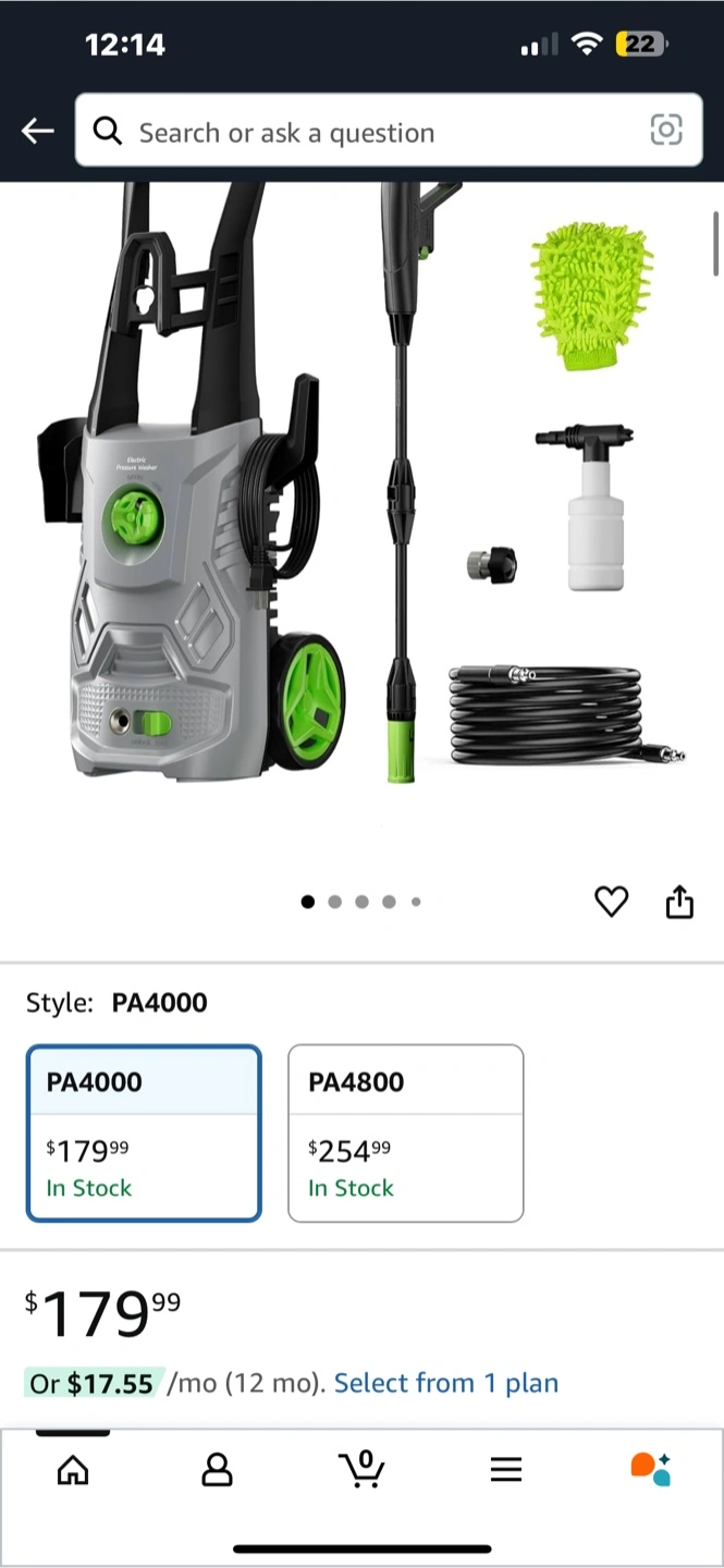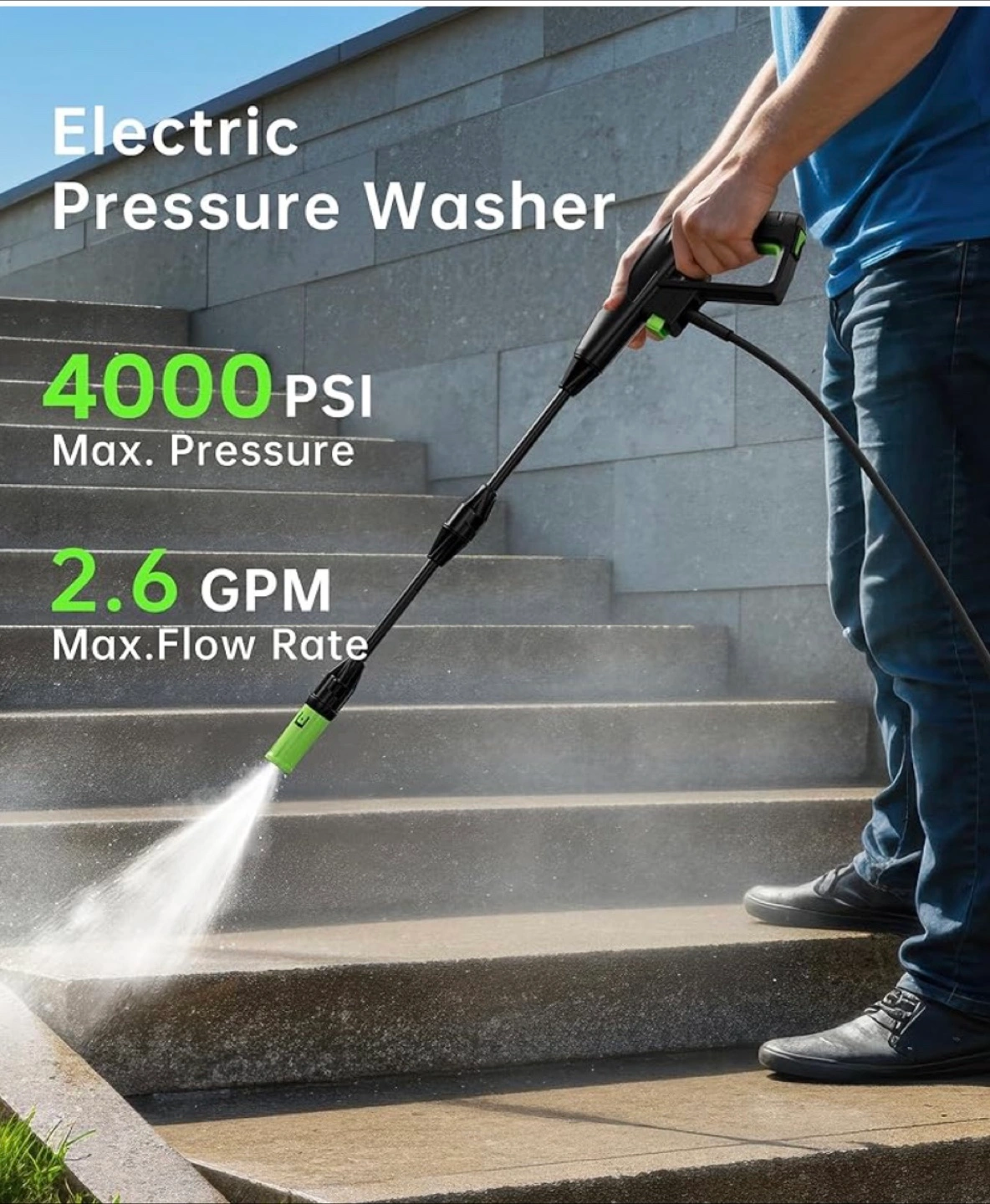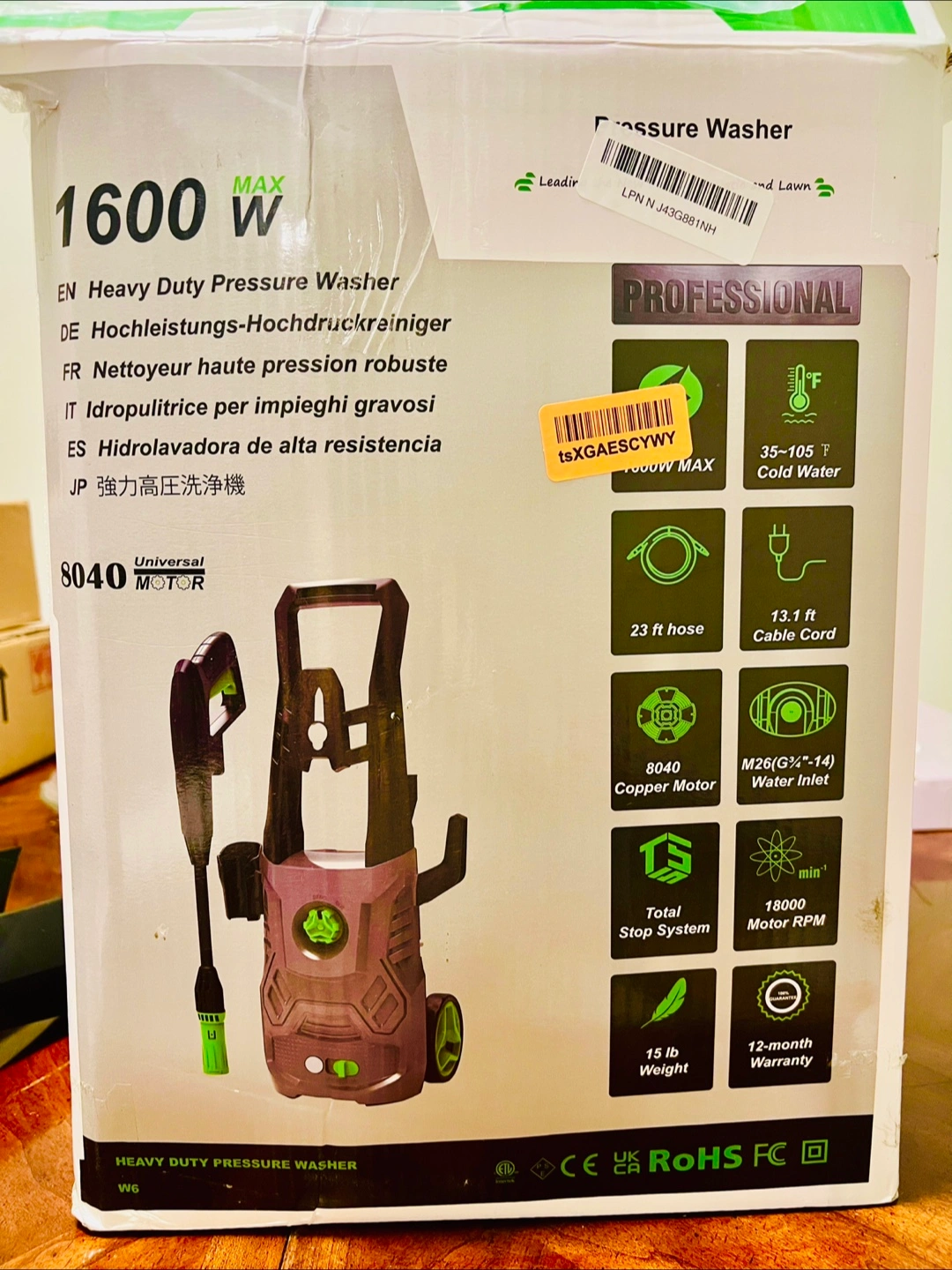 68Selling a Leadir PA4000 1600W MAX electric pressure washer. It has a max pressure of 4000 PSI and a max flow rate of 2.6 GPM. This heavy-duty pressure washer comes with a universal 8040 motor. It also features a total stop system and a 12-month warranty. Originally bought for $179.99!