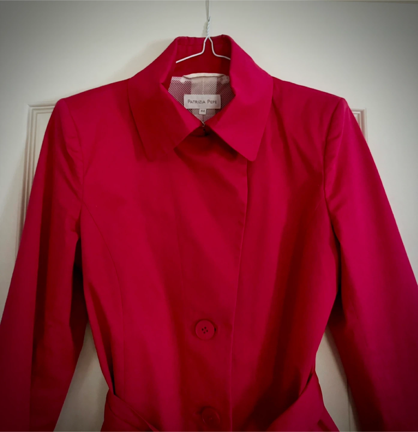 Selling a lovely Patrizia Pepe trench coat in a vibrant pink. It's a size 44. Perfect for adding a pop of colour to your wardrobe. It has a beautiful belt that can be tied into a flowing bow. Patrizia Pepe is an Italian fashion brand featuring intense colours, and essential silhouettes with unexpected details for a woman with glamour, embodying an independent and courageous spirit.