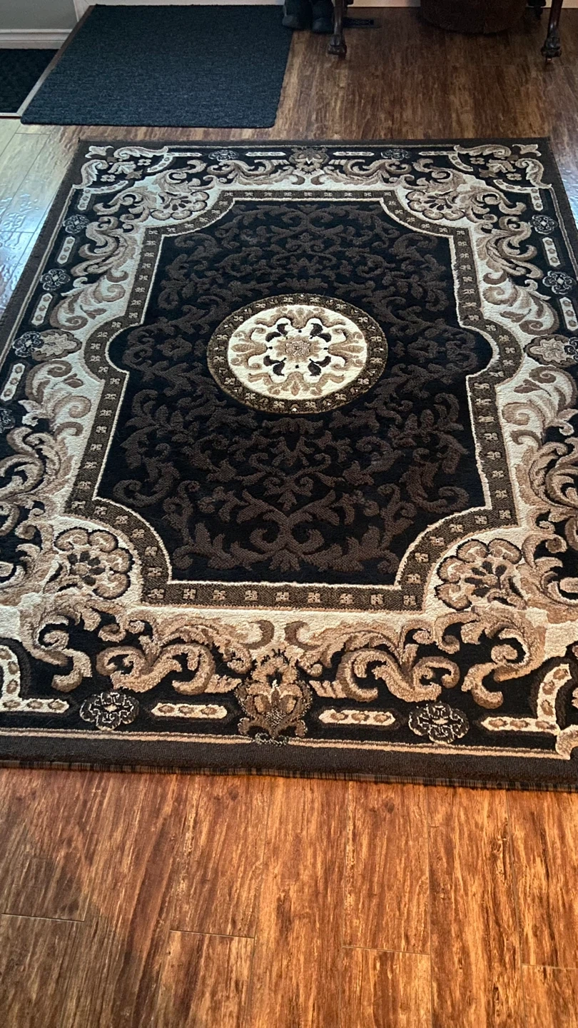 119Selling a 5’ x 7’ patterned area rug in brown and beige tones! It features a central medallion design and decorative borders. Perfect for adding a touch of elegance to any room Great Condition! Pick up Marlborough Park NE