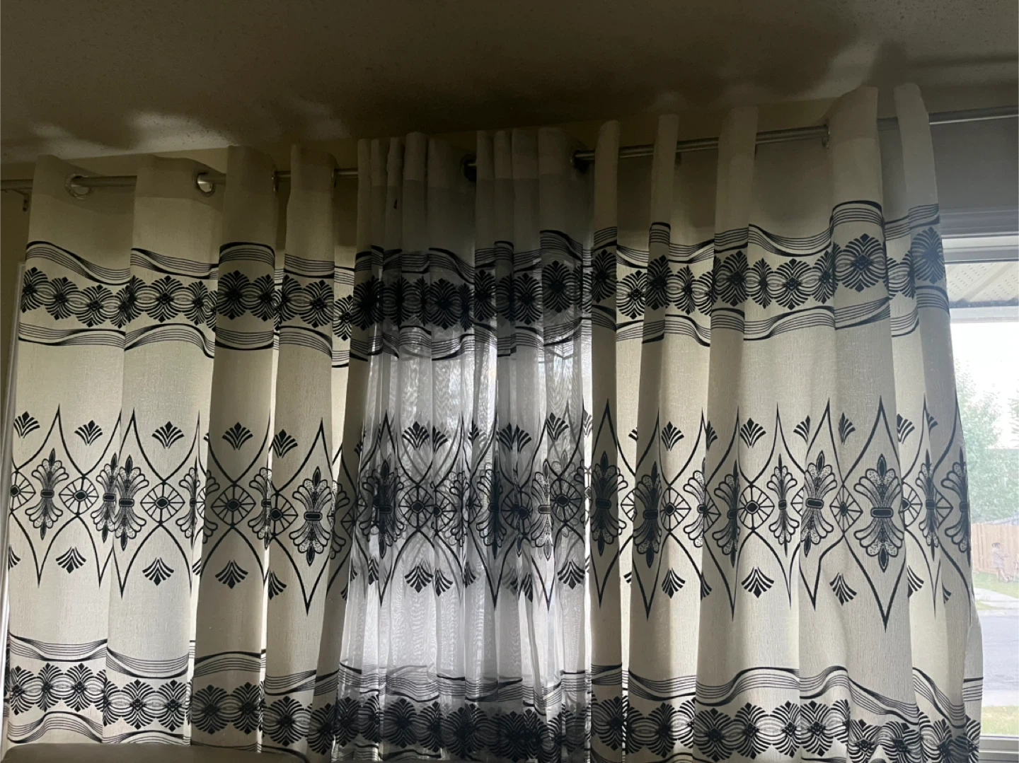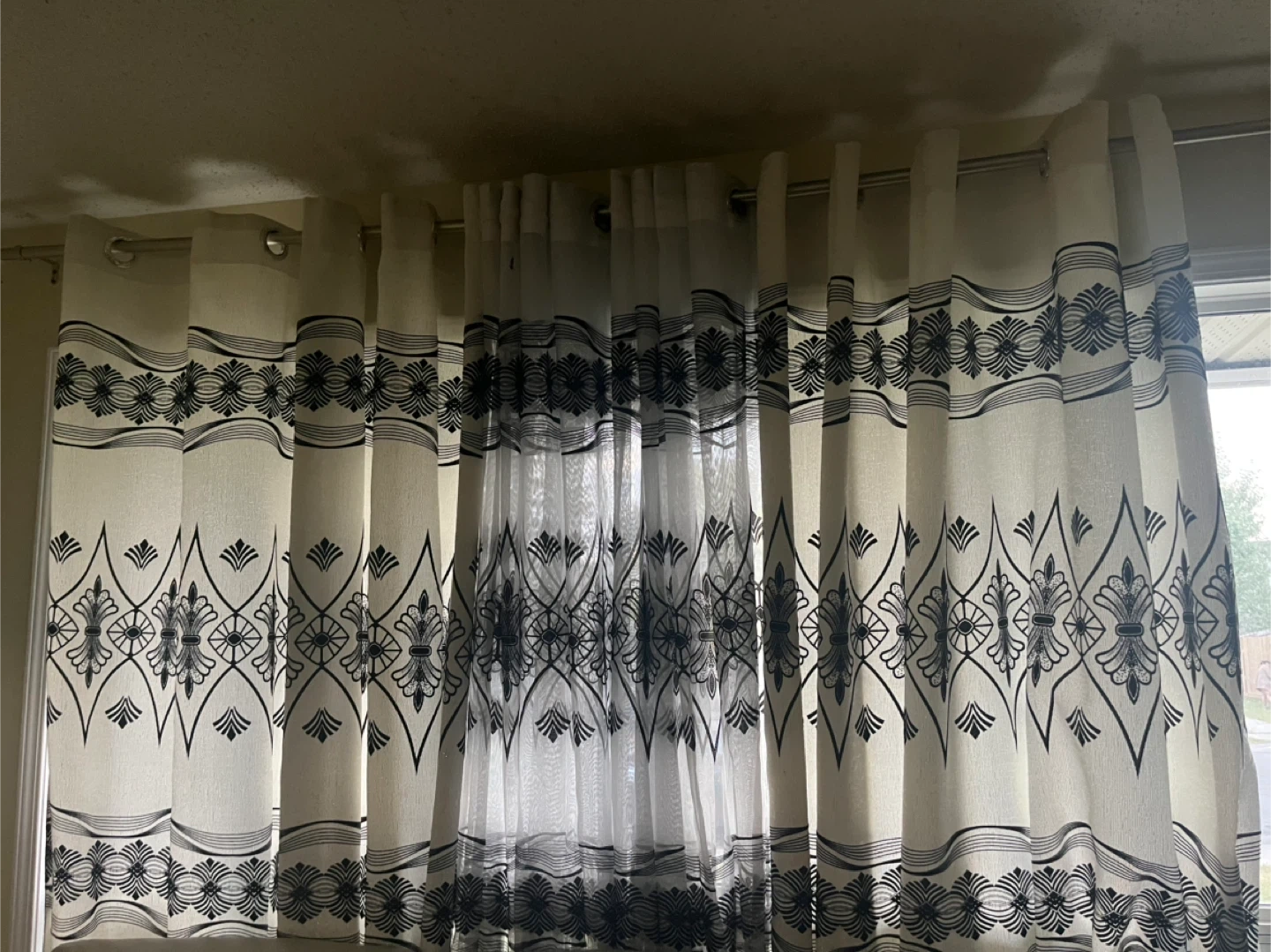 These curtains have a lovely pattern that could add a nice touch to any room! They're in great condition and ready to bring some style to your home