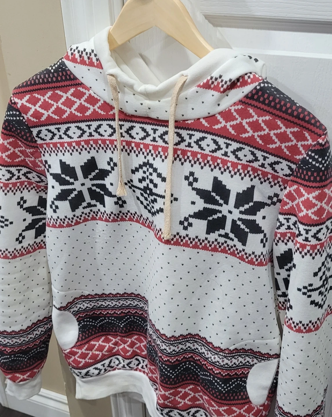 70Cozy hoodie with a unique pattern, perfect for keeping warm. It's in great condition. Size S Pickup in Cranston