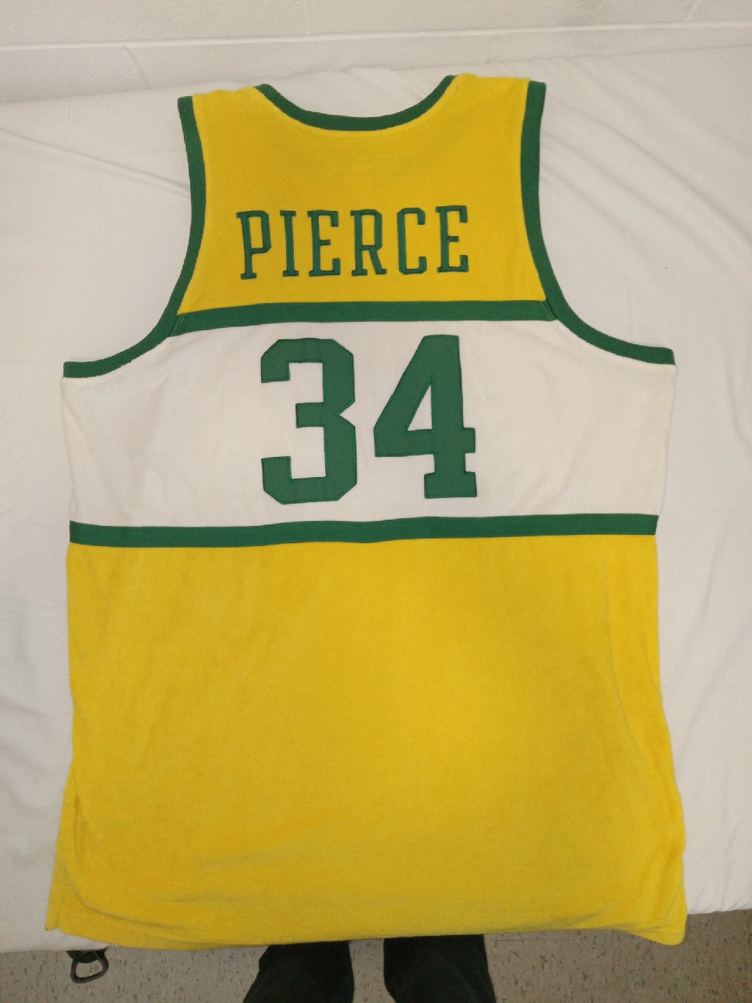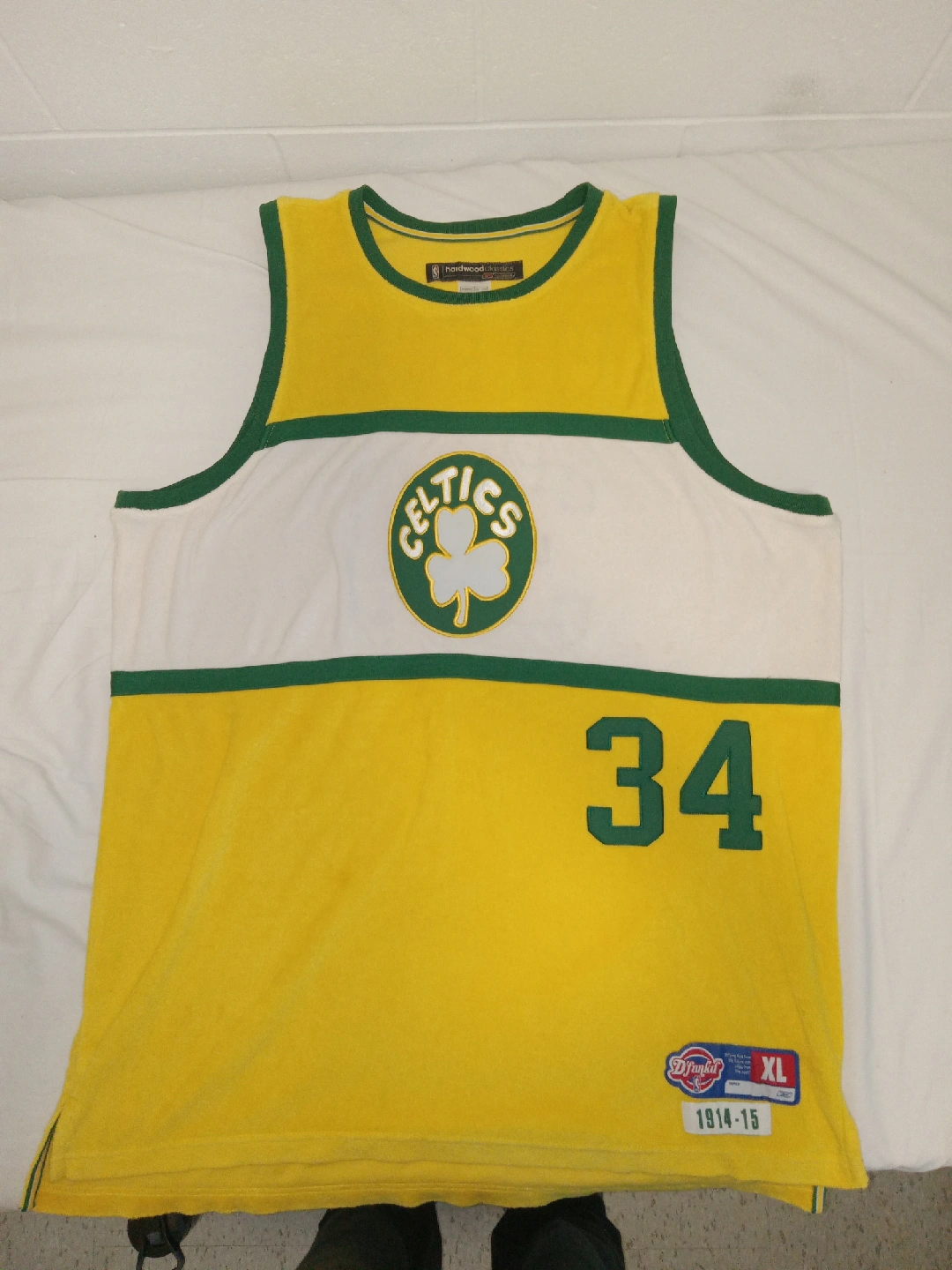 Selling a Reebok Hardwood Classics Boston Celtics jersey. It's an XL size and features the name 'Pierce' and number 34 on the back. The jersey is made of 85% cotton and 15% polyester. It's in great condition and ready for a new home! 30$ or best offer. pickup or meet-up downtown London