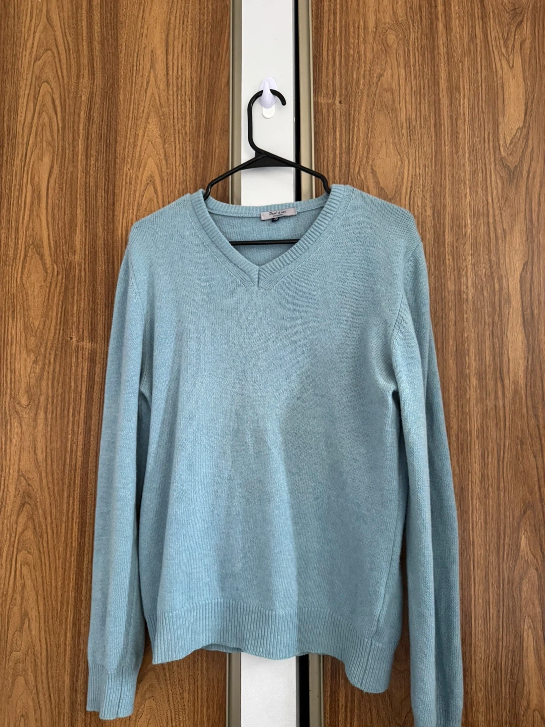 10Here's a lovely light blue V-neck sweater from Paul & Son Fine Yarns! It's a size 50 and would be a great addition to your wardrobe. It's in great condition and ready for a new home