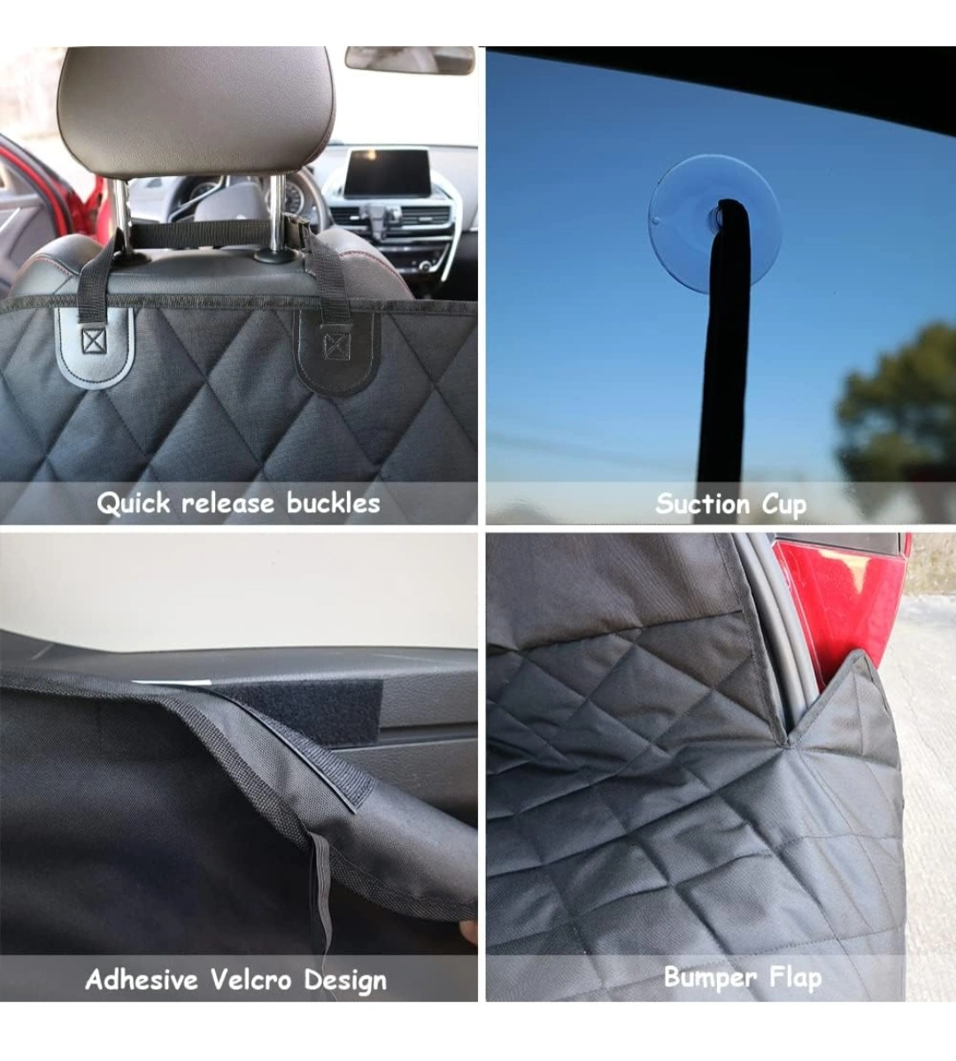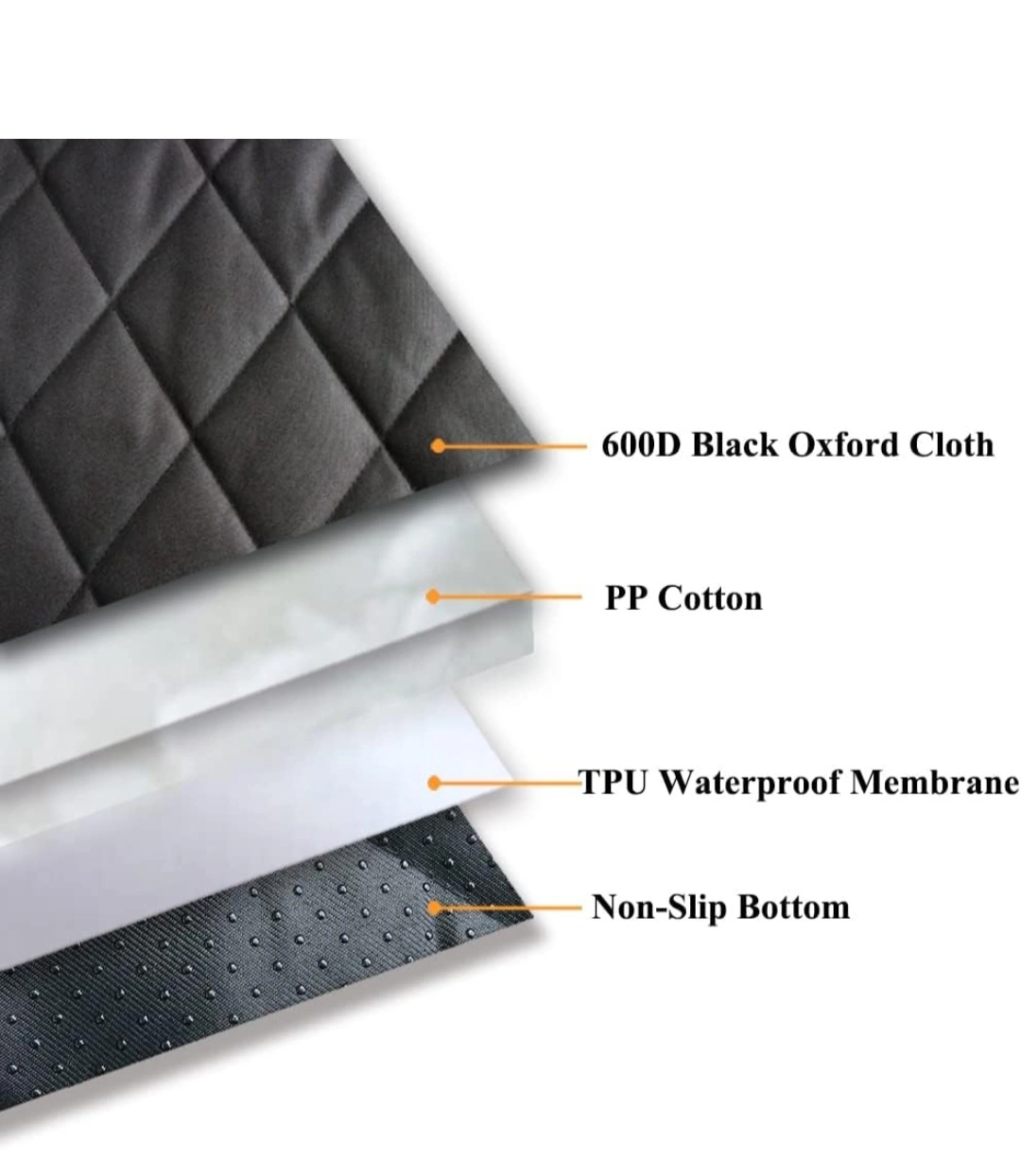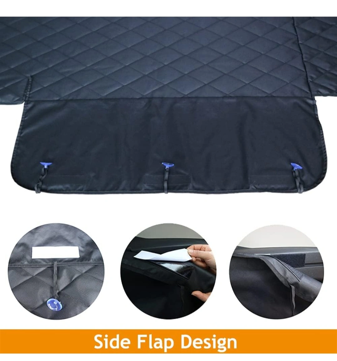 Waterproof car trunk liner. Non-slip bottom. Fits most vehicles. Includes side flaps and quick release buckles. Measures 91 inches long and 55 inches wide. Durable and easy to clean.