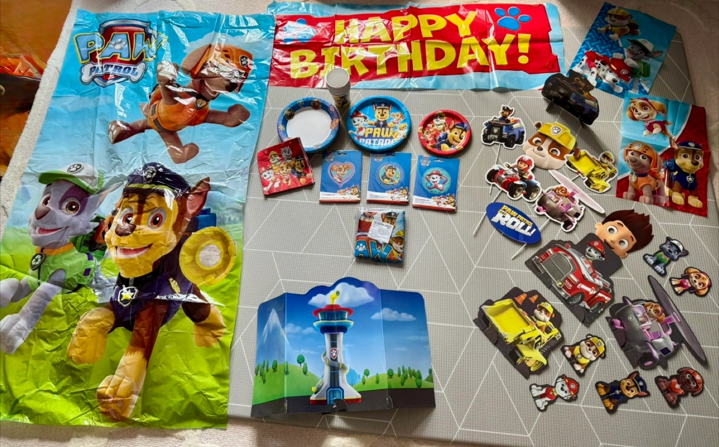Paw Patrol themed birthday party supplies! Includes plates, napkins, cups, foil balloons, and a birthday banner. *4-5 brand new helium balloons!!* 8 Cups 23 Plates 8 Napkins $20 for everything!